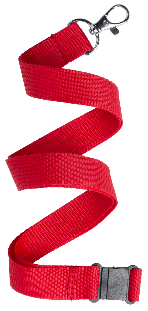 Lanyard aus robustem Polyester, mit Sicherheitsverschluss im Nacken und Metallkarabiner. Erhältlich in einer Vielzahl von lebendigen Farben.