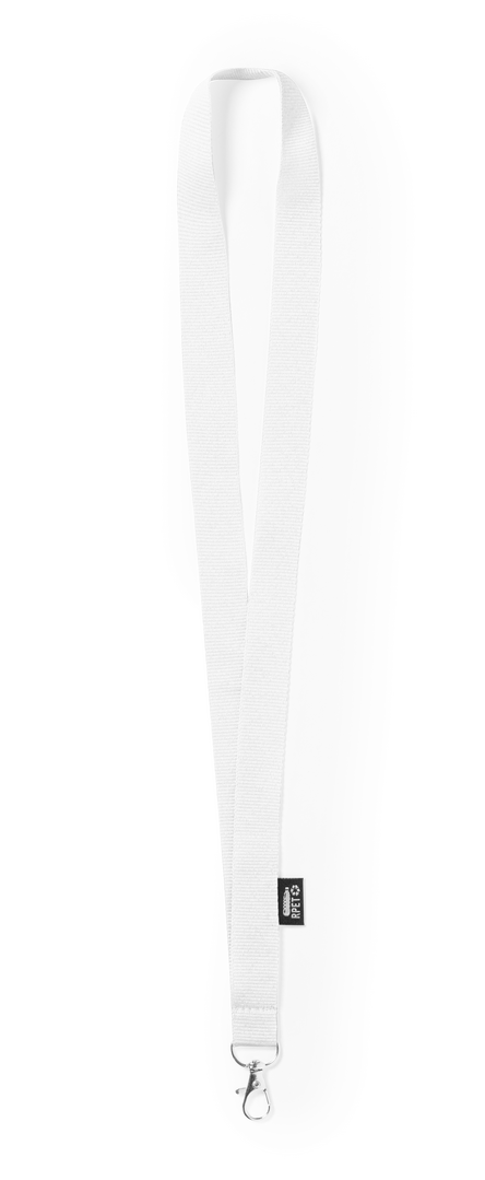 Lanyard der Nature-Linie aus widerstandsfähigem 300D-RPET-Polyester, mit drehbarem Metallhaken. Etikett mit unverwechselbarem RPET und erhältlich in einer breiten Palette von Farben, speziell für die Sublimation in Weiß. Das RPET-Material wird aus recyceltem Kunststoff hergestellt, was die Wiederverwendung von Kunststoffabfällen fördert und zur Nachhaltigkeit des Planeten beiträgt.