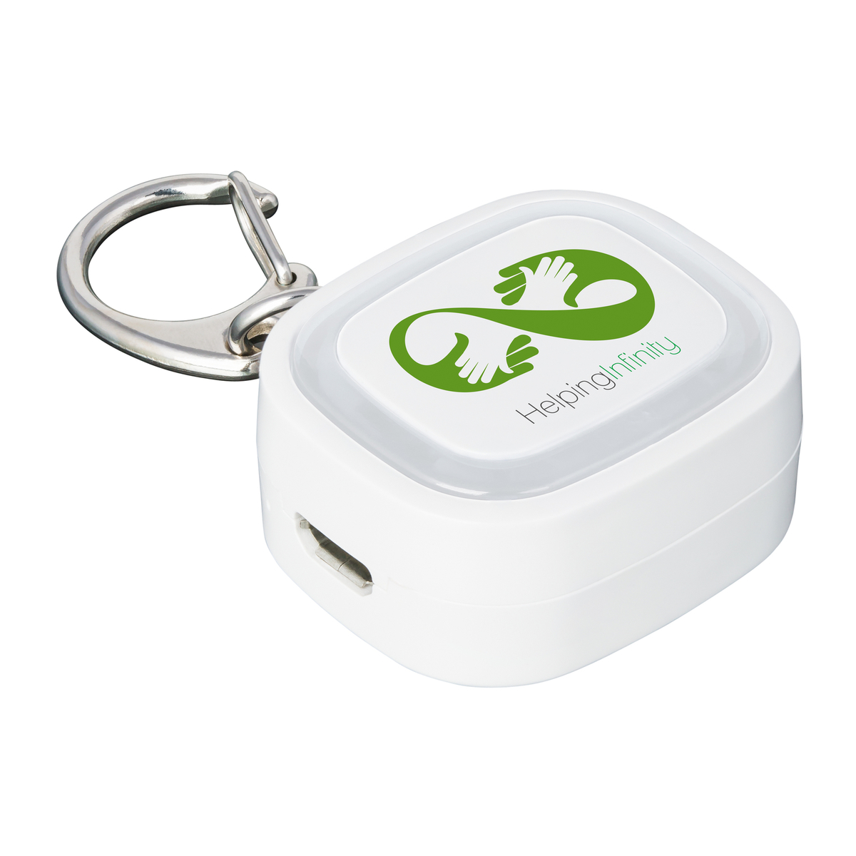 Das Schlüssellicht mit aufladbarer Lithium-Polymer-Batterie hat neun verbaute Hochleistungs-LEDs mit 0,2 Watt und einer Leuchtstärke von 6000K. Der umlaufende Farbring an der Werbefläche wird per LED hinterleuchtet.