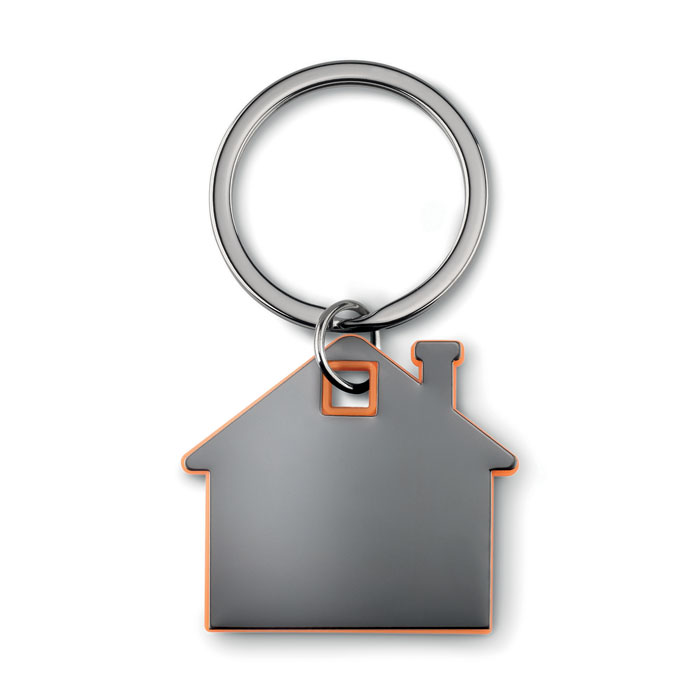 Schlüsselring mit Anhänger in Optik eines Hauses aus Edelstahl und Kunststoff.