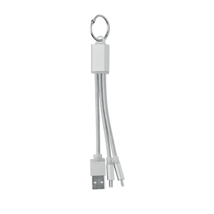 Schlüsselring mit Anhänger und Ladekabel USB-A, Mikro-B (2-in-1) und Typ-C.
