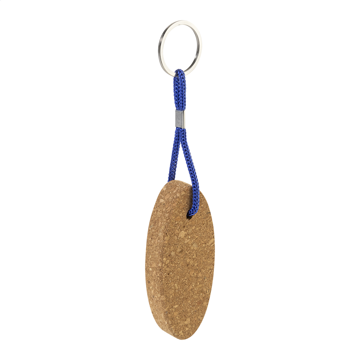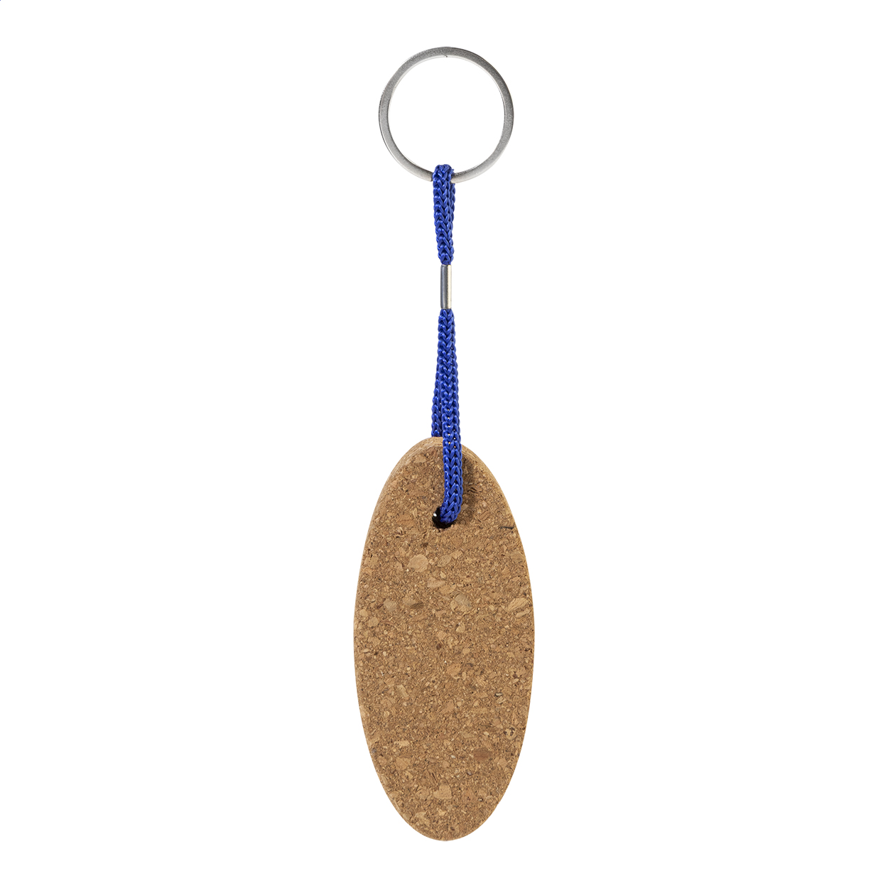 Schwimmbarer Schlüsselanhänger aus natürlichem Kork mit Polyesterkordel und Metallring.