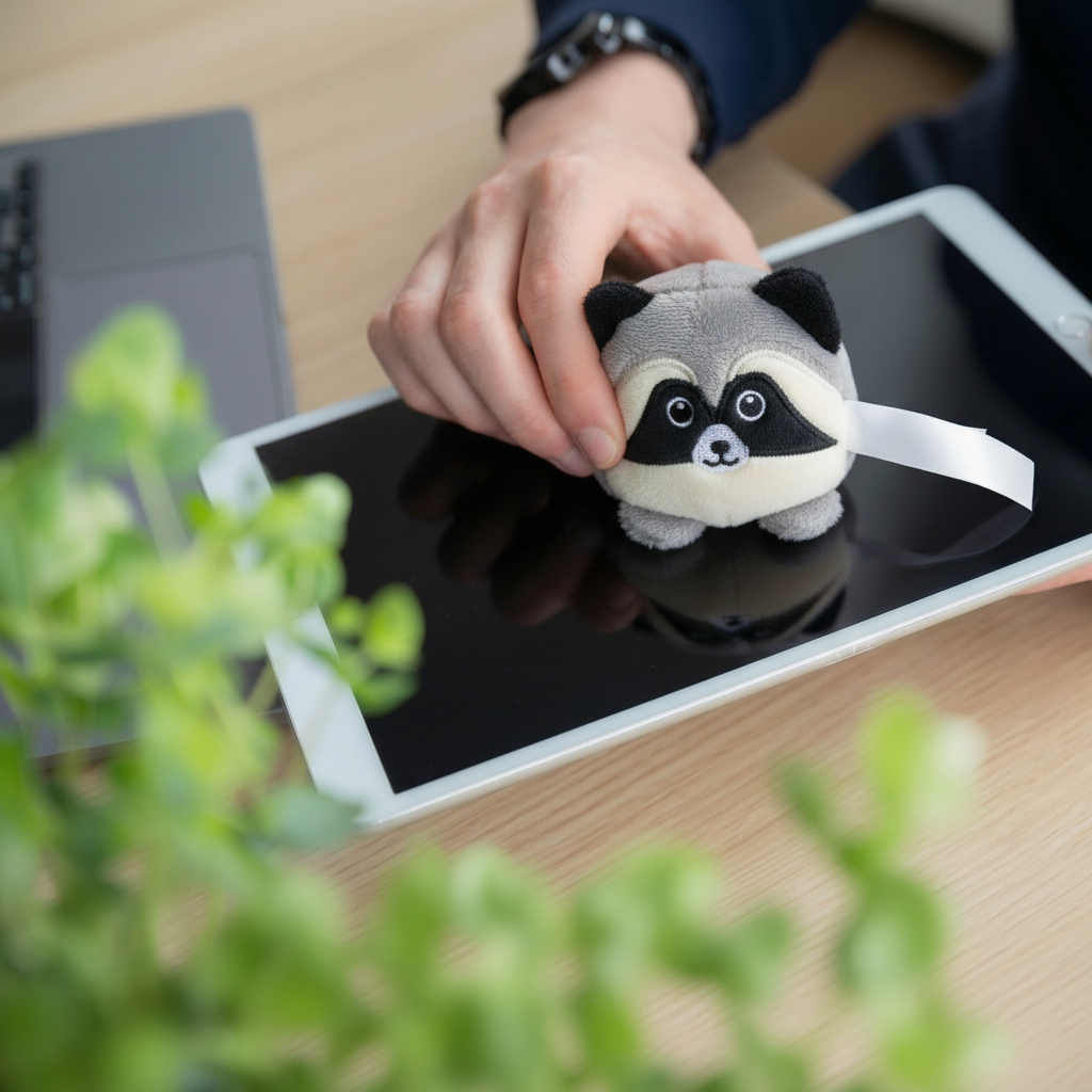 Schmoozies® Waschbär ist der sympathische Saubermacher unter den Displayreinigern. Mit seinem niedlichen Gesicht und seinem flauschigen Stil schleicht er sich direkt in die Herzen Ihrer Kunden – und sorgt gleichzeitig für streifenfreie Bildschirme. Mit der Mikrofaserunterseite entfernt er zuverlässig Schmutz und Fingerabdrücke. Die Werbefahne bietet Platz für Ihre Botschaft und macht den Waschbären zum charmanten Markenbotschafter. Ideal für Umweltkampagnen, Naturfreunde oder als liebenswerte Aufmerksamkeit mit hohem Sympathiewert.