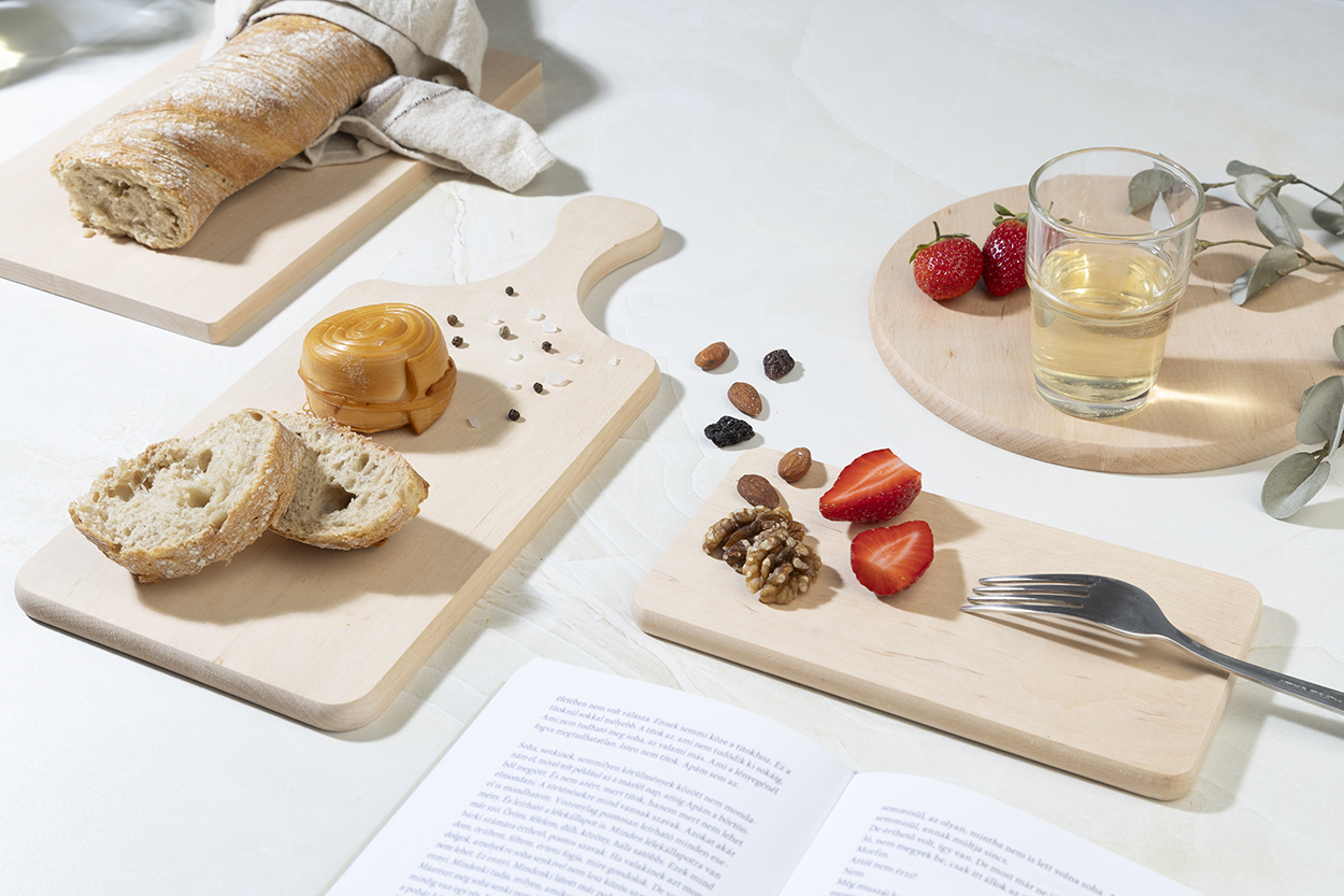 Kleines Schneidebrett aus einem Stück natürlichem Erlenholz. 100% natürlich und komplett klebstofffrei.