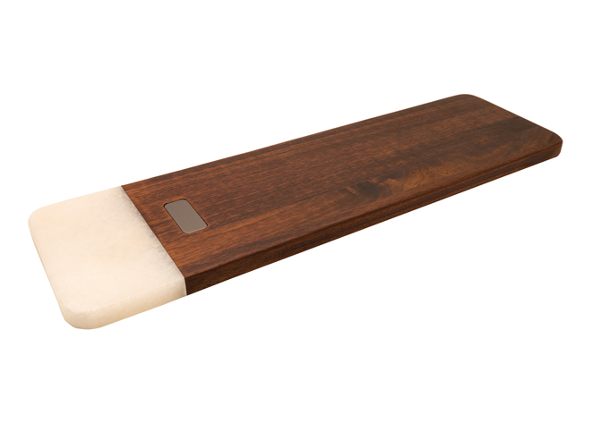 Massives Akazienholzbrett mit weißem Marmor. Metallplättchen mit Titan-Finish. Kann auch als Präsentationbretter verwendet werden. Die Vorteile in Kürze: - Akazie ist eines der am besten geeigneten Hölzer für Schneidebretter aufgrund seiner Härte und seiner Widerstandfähigkeit gegen Feuchtigkeit. - Robuste Dicke, um seine Form im Laufe der Zeit zu erhalten und das Risiko von Verwindungen zu vermeiden. - Ein Hauch von weißem Marmor, um die visuelle Eleganz dieses Bretts zu verstärken. - Beeindruckende 50cm XXL-Länge, die es auch zu einem großartigen Präsentationsbrett macht.