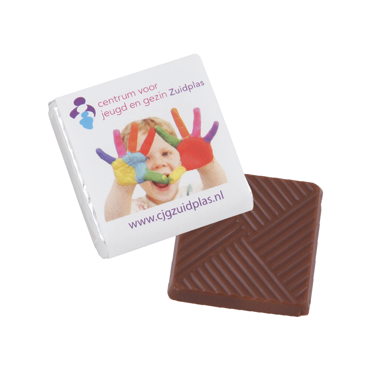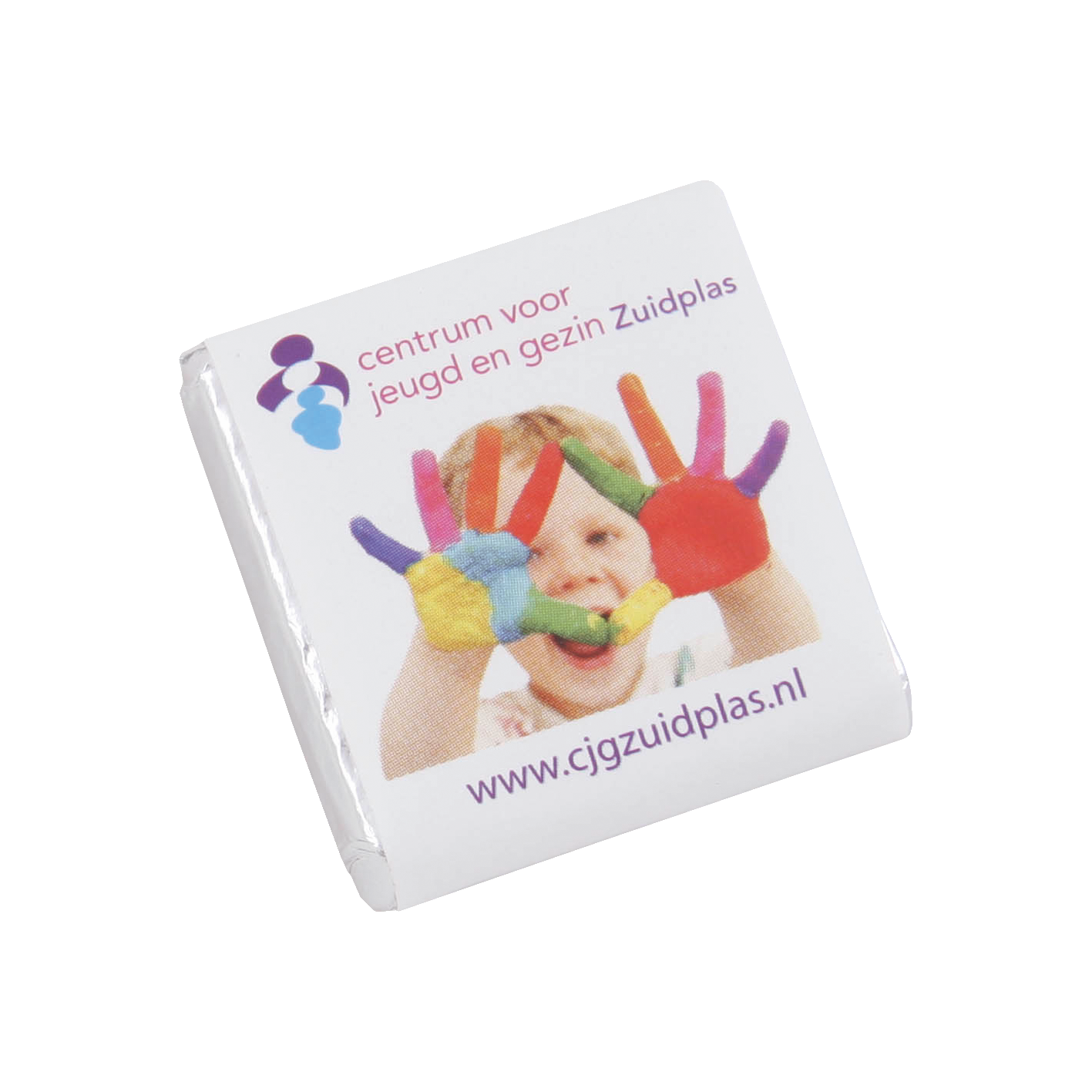 Schokolade 5 gr. 4-C Druck auf Wickel, Milch oder dunkle Schokolade.