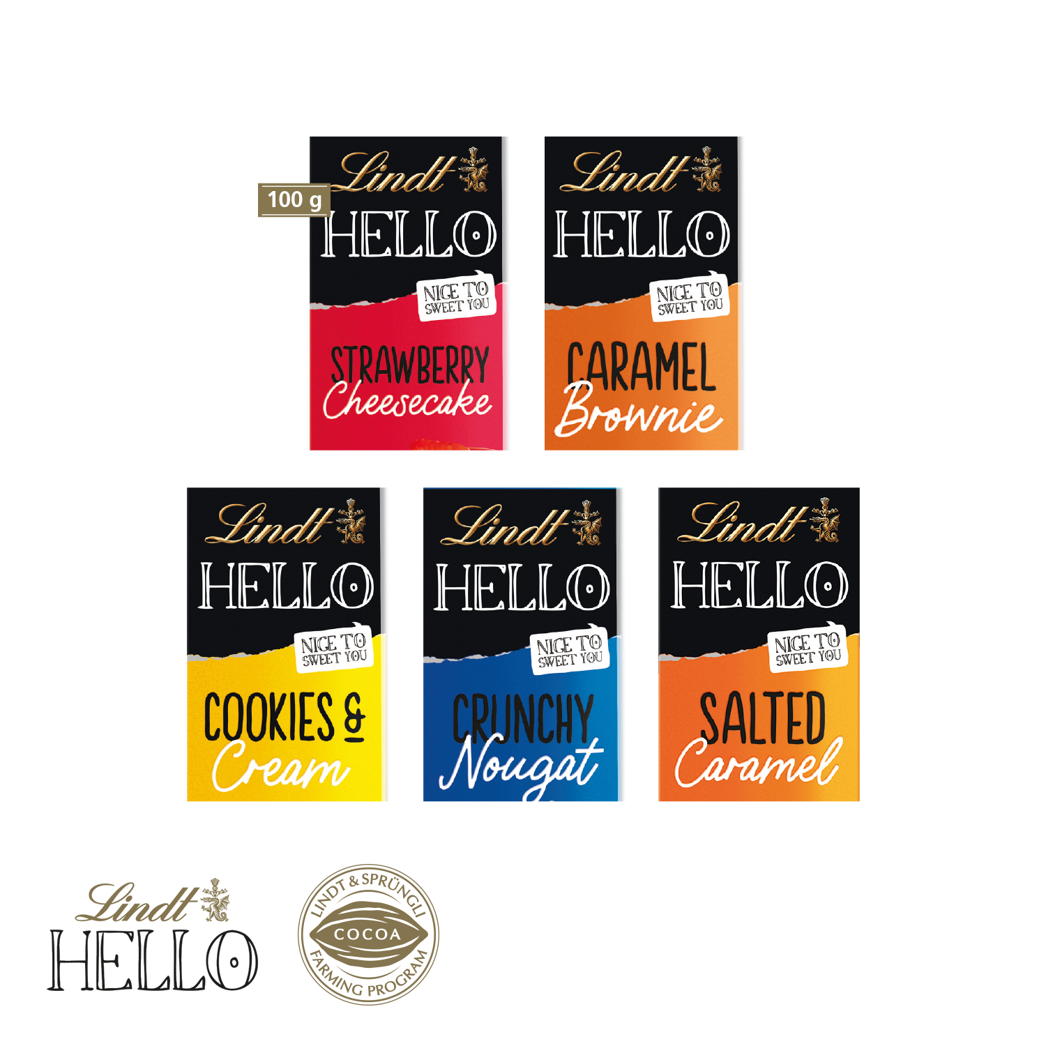 Nice to sweet you! Entdecken Sie die aufregenden neuen Kombinationen mit der zartschmelzenden Lindt HELLO Schokolade.