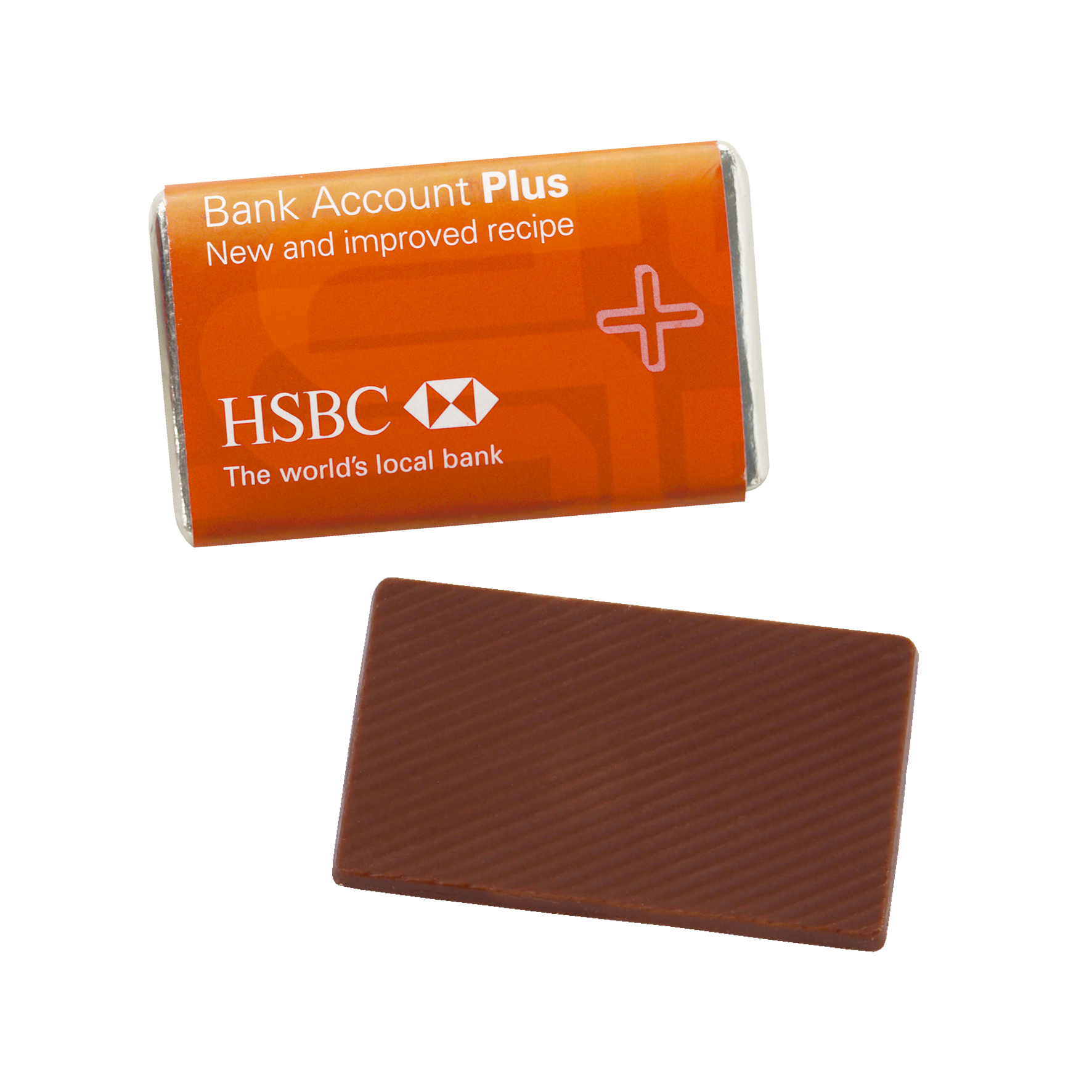 Schokotäfelchen 10,5 gr., aus Milchschokolade Barry Callebaut, mit 4c-Druck auf Wickel. Ein ganz persönliches Dankeschön !