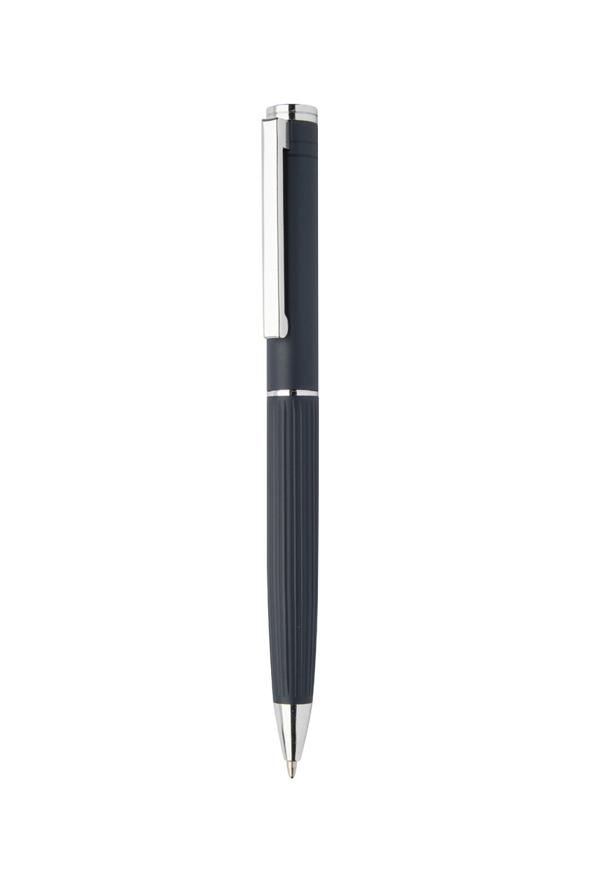 Elegantes Set aus Kugelschreiber und Tintenroller Aluminiumschaft mit Streifenstruktur. In schwarzer Geschenkbox, mit blauer Mine.