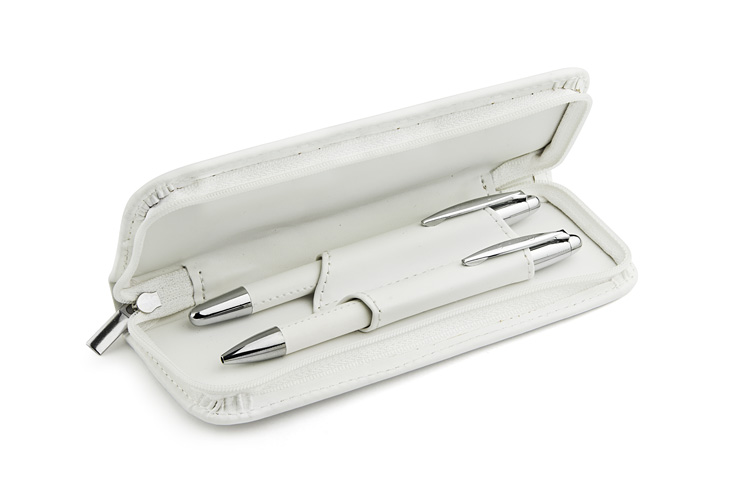 Schreibset Elegance: Kugelschreiber und Rollerball in einem Etui aus lederähnlichem Material (PU). Kugelschreiber und Rollerball mit blauen Tintenminen. Wir lasergravieren Ihr Logo auf die Schreibgeräte.
