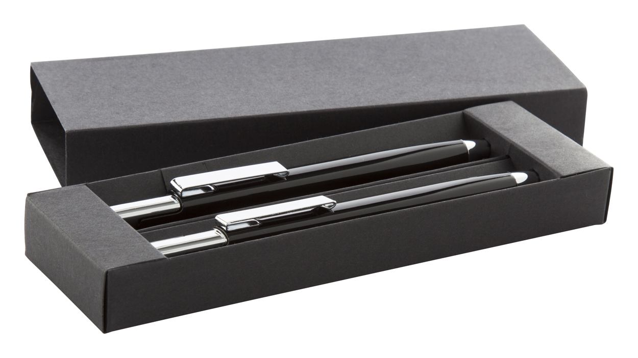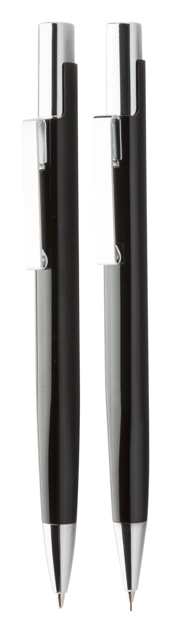 Aluminium-Schreibset, bestehend aus Kugelschreiber (blauschreibend) und Druckbleistift (0,7mm). Einzeln in schwarzer Geschenkbox.