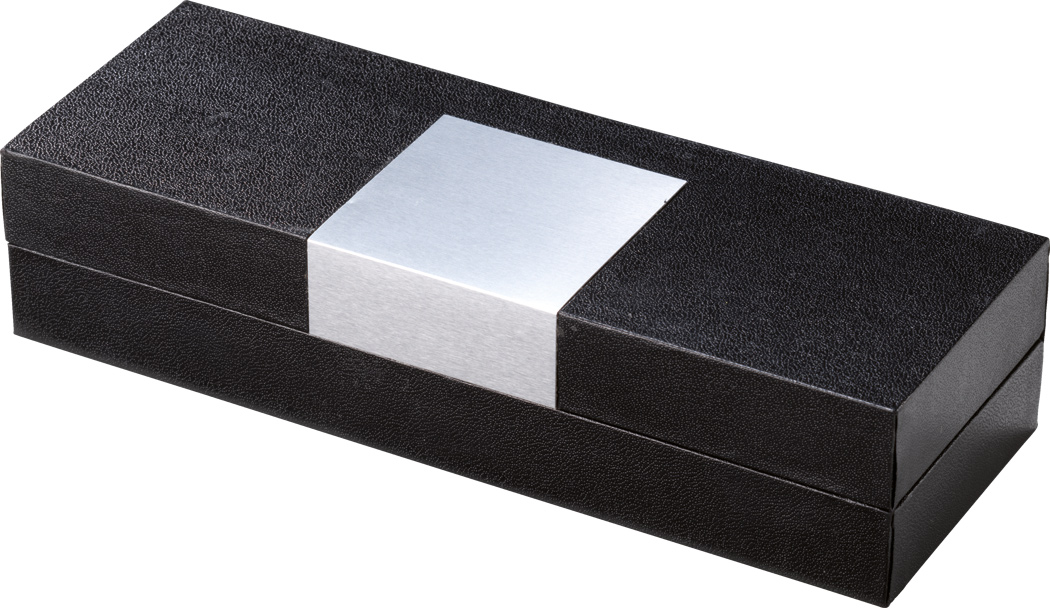 Veredelung: Lasergravur Metall bis 24 cm², auf dem Logo-Plättchen der Box, 45 x 45 mm (LY24)