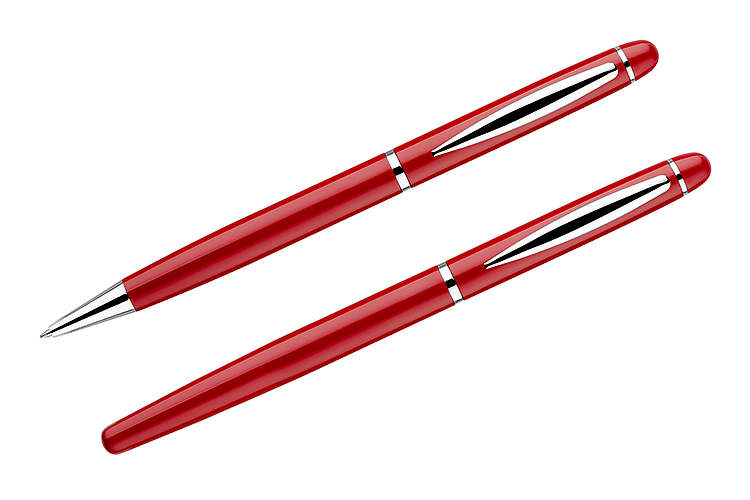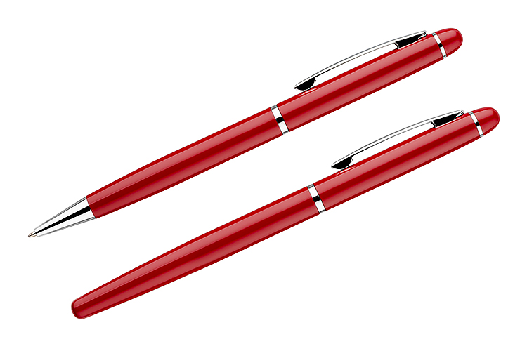 Elegantes Schreibset, verpackt in einem Etui aus lederähnlichem Material (PU). Das Set enthält einen Kugelschreiber und einen Rollerball. Wir gravieren Ihr Logo per Laser auf die Oberfläche der Schreibgeräte. Das Logo kann auch auf dem Etui eingraviert werden.