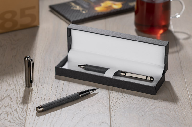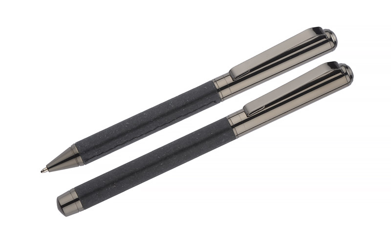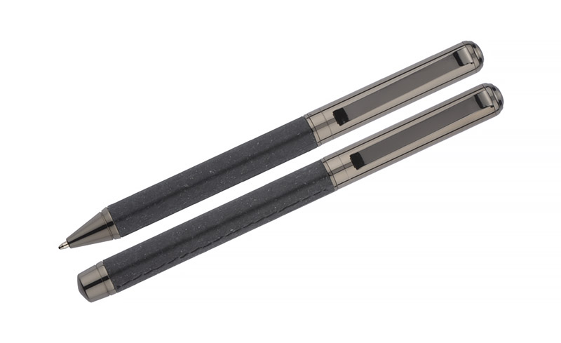 Das OHIO-Set ist ein Vorschlag für ein elegantes Schreibset, das sich auf Öko-Trends bezieht. Der Metallkörper der Kugelschreiber ist mit recyceltem Naturleder veredelt. Chromzierteile passen perfekt zum natürlichen Rohstoff. Das Set enthält einen Stift und einen Tintenroller. Blaue Mine. Das Set ist in einer geschmackvollen Schachtel aus Papier verpackt. Der Deckel ist mit recyceltem Leder verziert.