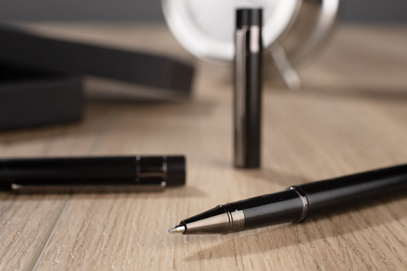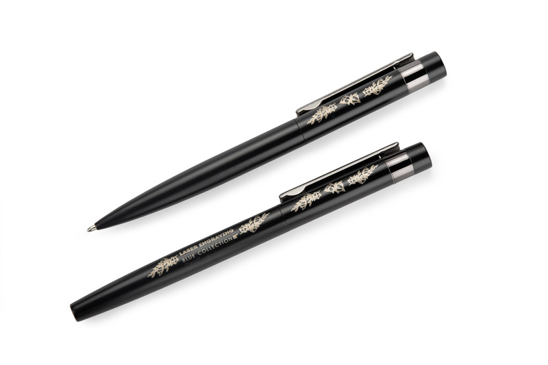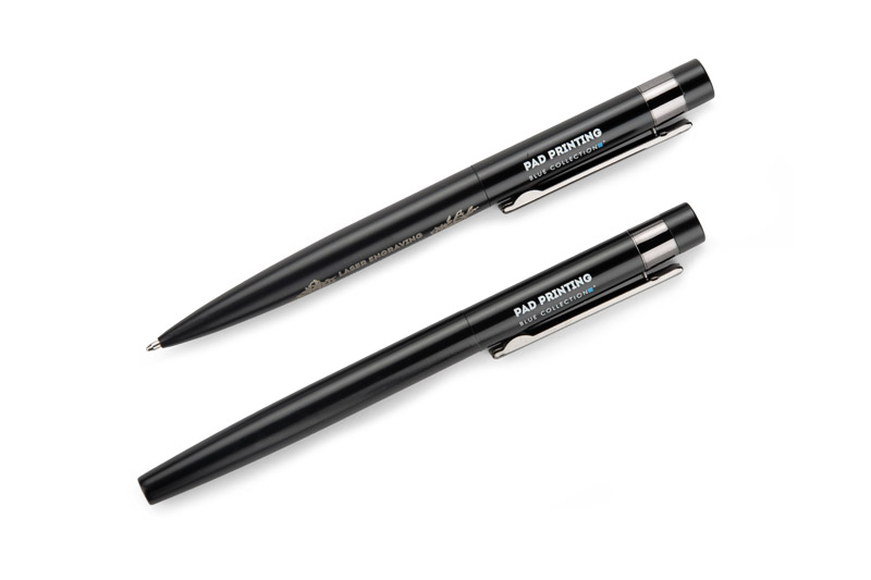 Das ZILE Schreibset im Etui enthält einen Kugelschreiber aus Metall und einen Rollerball-Stift mit modernem Finish. Vervollständigt wird das Ganze durch einen eleganten dunkelgrauen Clip, der dem Set einen professionellen Touch verleiht. Eine ausgezeichnete Wahl für ein Geschäftsgeschenk.