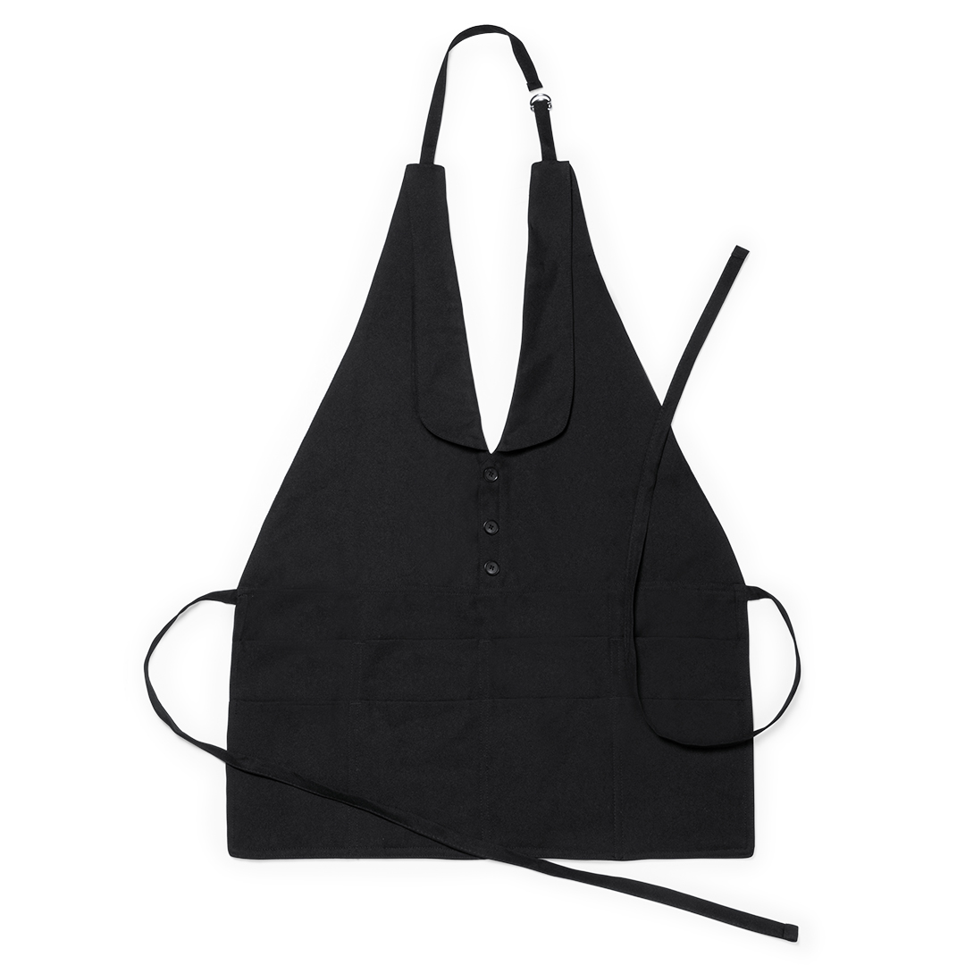 Elegante Schürze mit Knöpfen aus 100 % Polyester. Mit verstellbaren Bändern an Nacken und Hüfte.