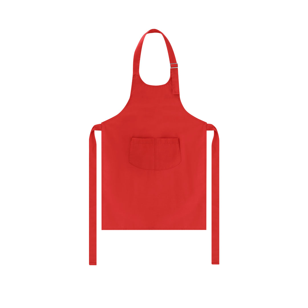 Hochwertige Kinder-Schürze, hergestellt aus einer Kombination aus Baumwolle und Polyester. Mit praktischer doppelter Fronttasche und Nackenbändern mit chromatischem Versteller. Mit einem Schnitt, der unter dem Knie endet, bietet sie ausgezeichneten Schutz.