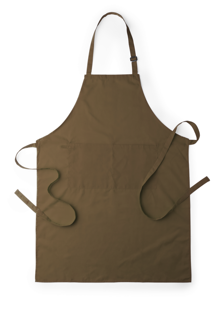 Hochwertige Schürze aus TC-Material - Baumwoll / Polyester-Mischgewebe - in verschiedenen kräftigen Farben. Mit doppelter Fronttasche und Bändern zum Einstellen im Nacken. Schlitz unter dem Knie.