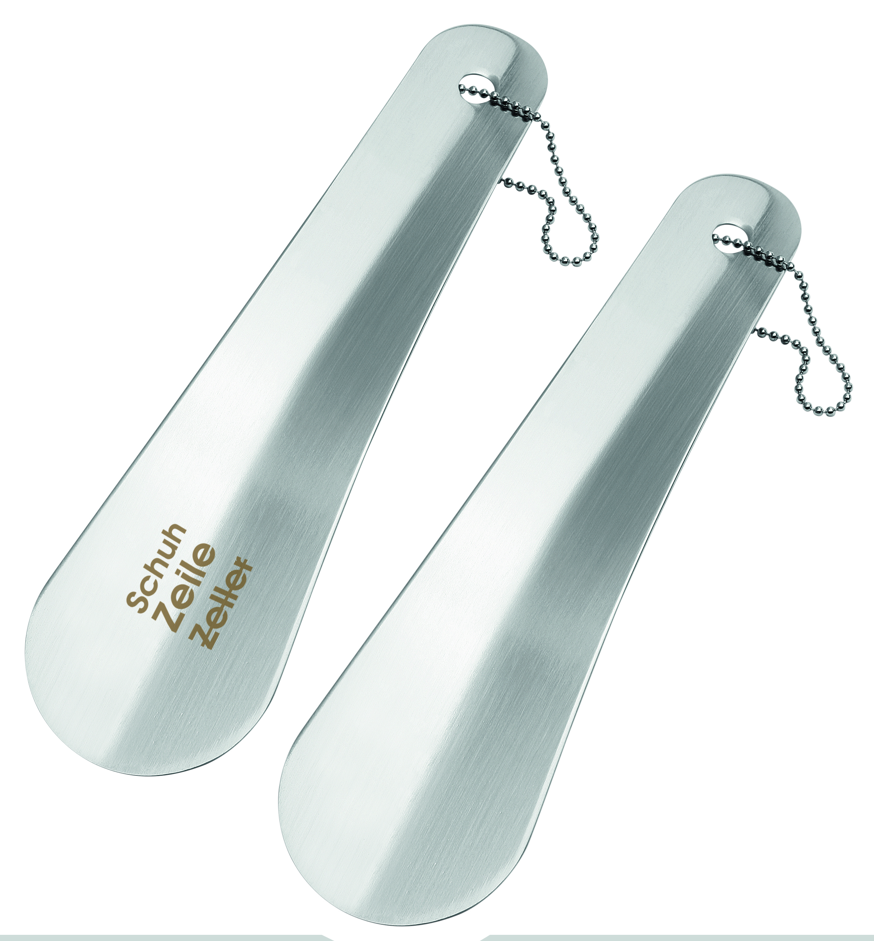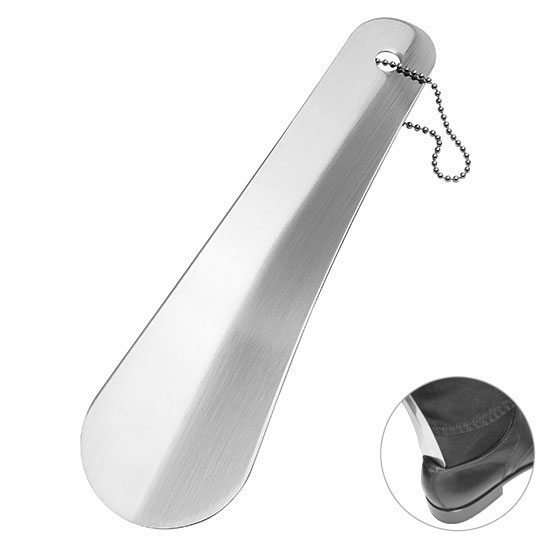 Schuhlöffel Edelstahl, kurz mit Kugelkette zum praktischen Aufhängen