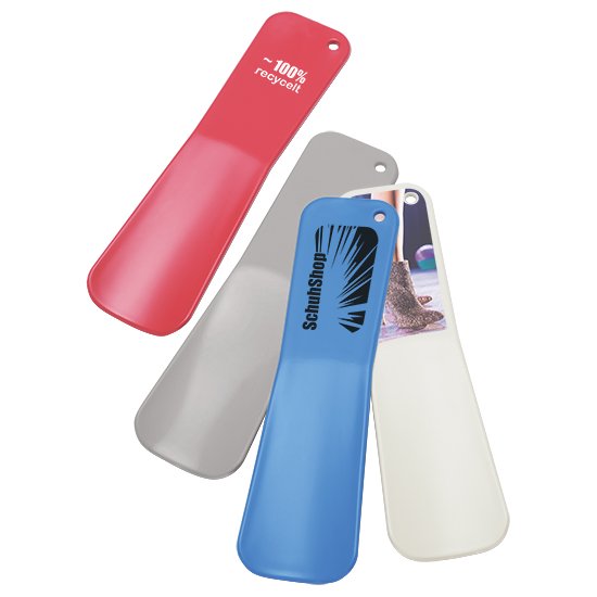 Schuhlöffel Recycling, kurz aus ca. 100 % recyceltem Kunststoff, mit weißem Papier