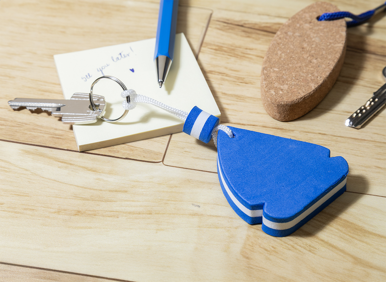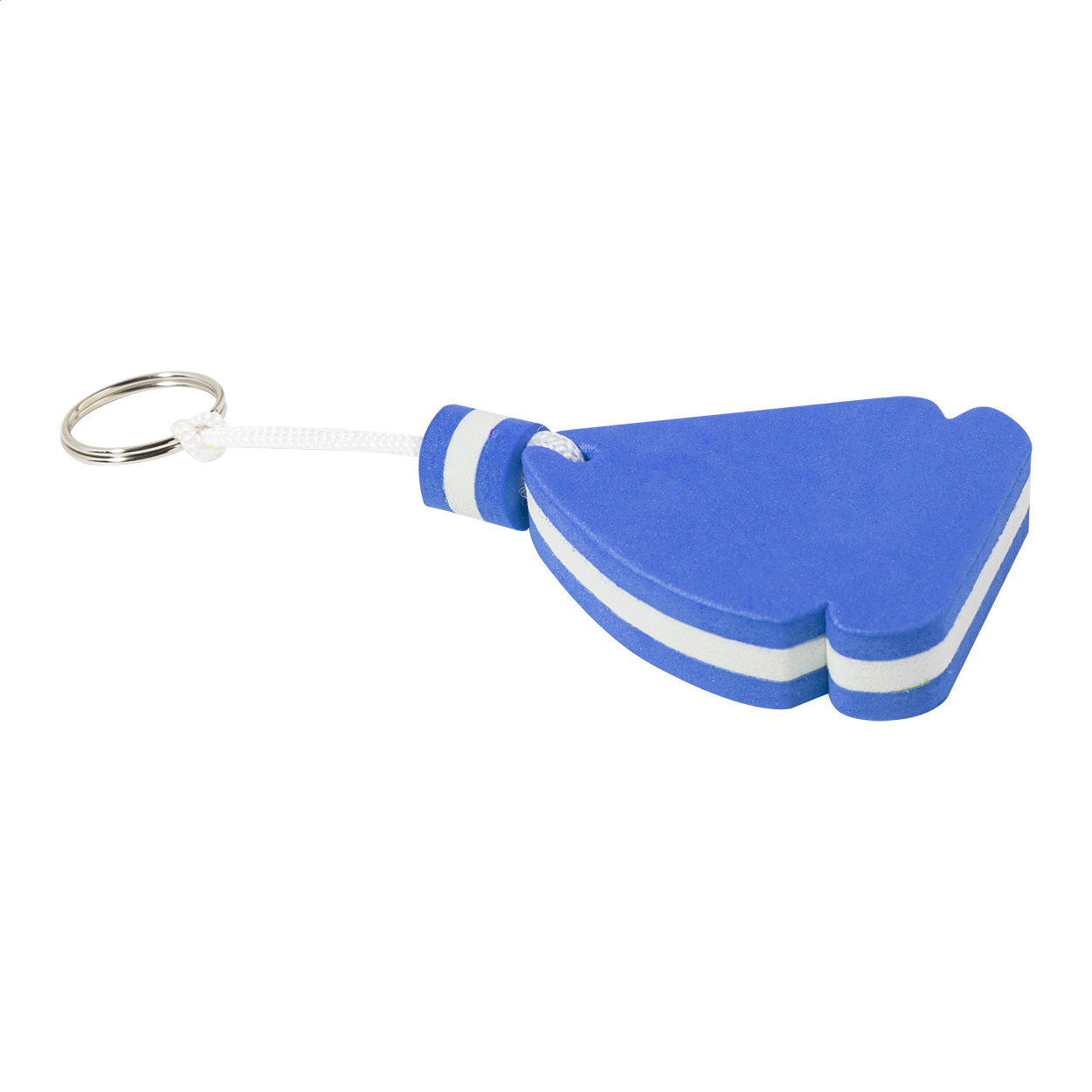 Schwimmbarer Schlüsselanhänger aus EVA-Schaumstoff in Form eines Segelboots mit Metallring.