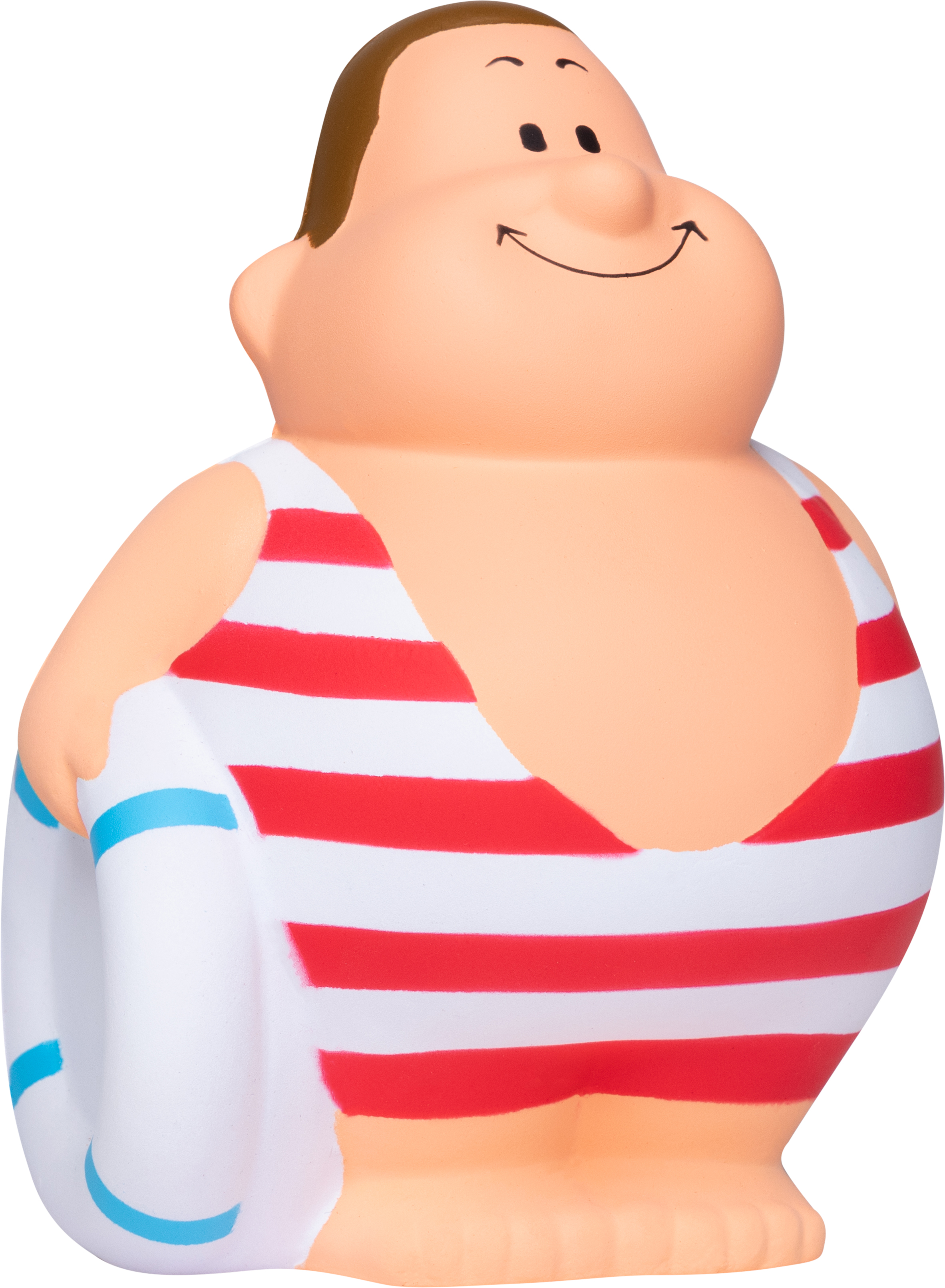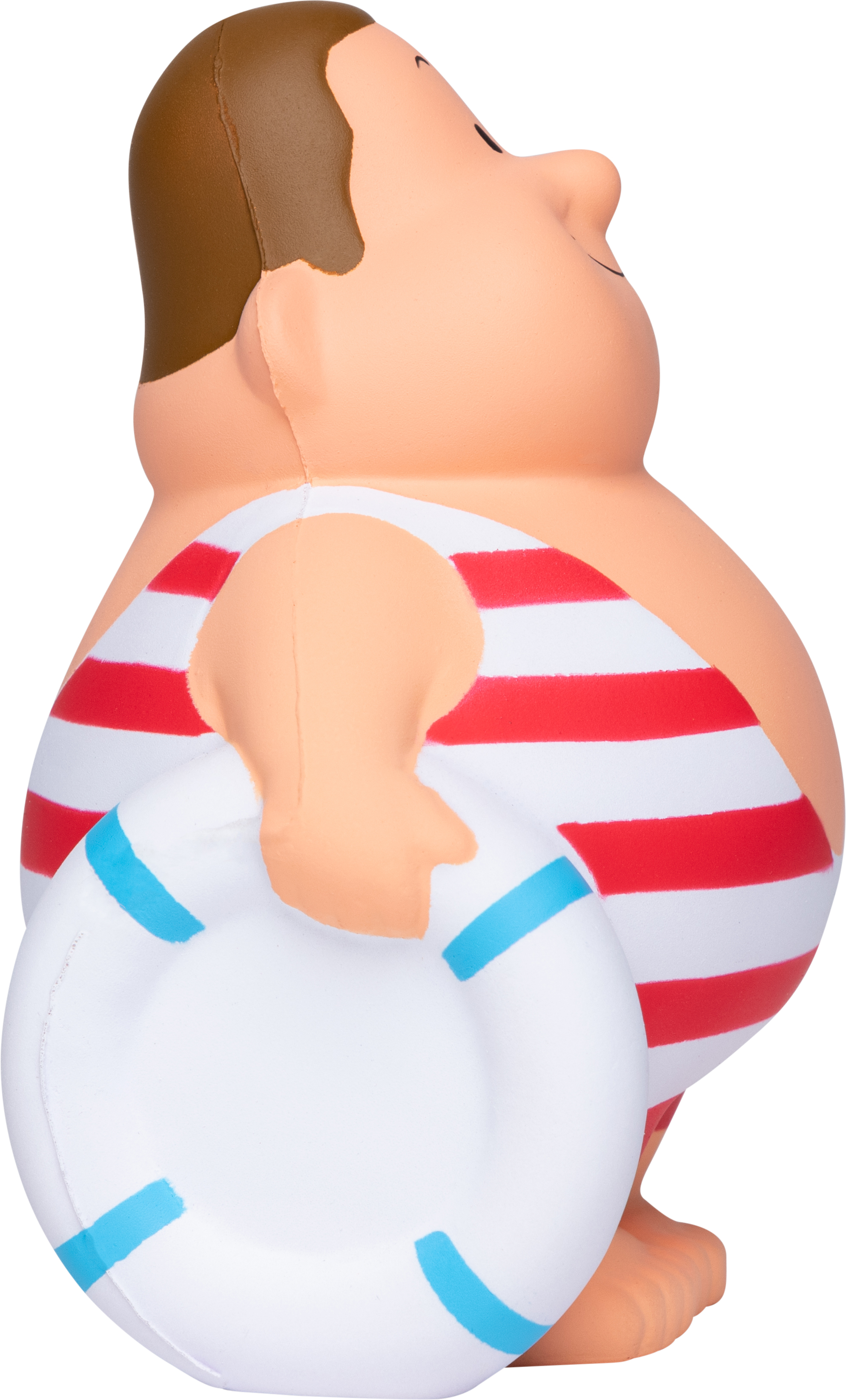 Fröhlich und kraftvoll zieht unser Schwimmer Bert® ruhig seine Bahnen. Im modisch geringelten Badeanzug versprüht er entspannt gute Laune. Bei akuten Stressanfällen springt er rettend ein: SQUEEZIES® Schwimmer Bert® zum Abbau von Stress einfach "zusammenknautschen". Durch die Materialbeschaffenheit nimmt das Produkt die Ursprungsform wieder ein.