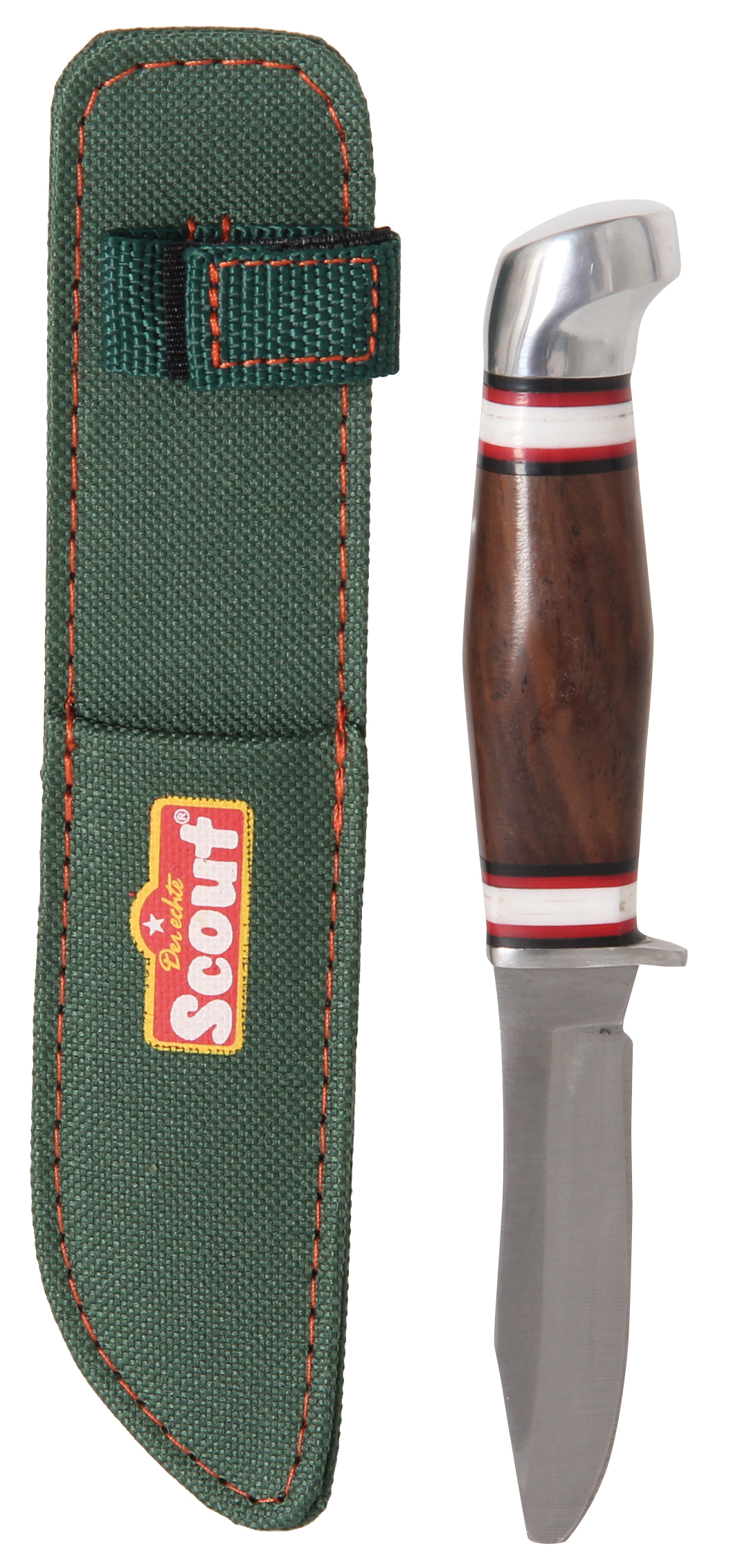Klinge aus rostfreiem Edelstahl - abgerundete Spitze - Holzgriff - Nylon-Etui mit Gürtelschlaufe