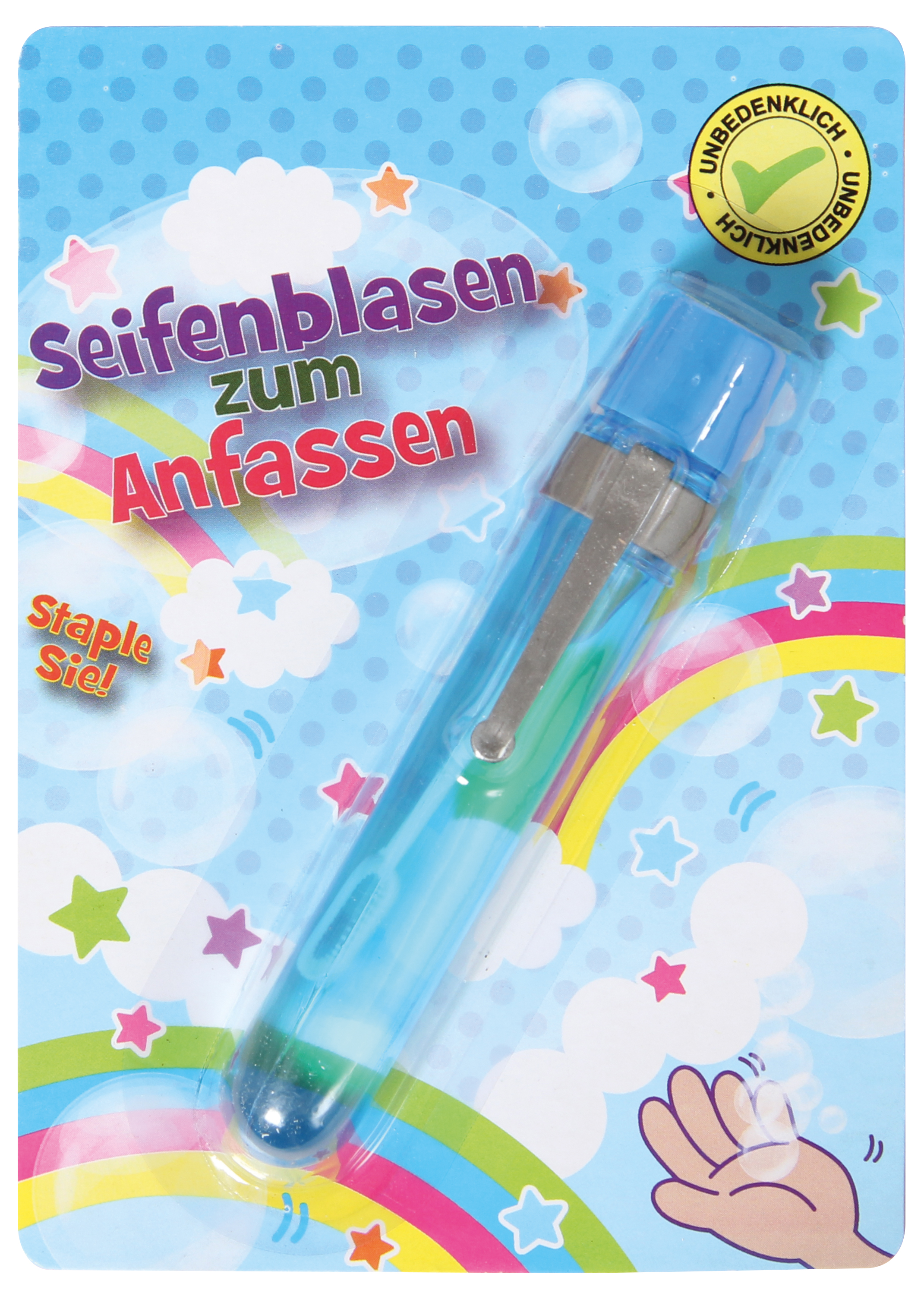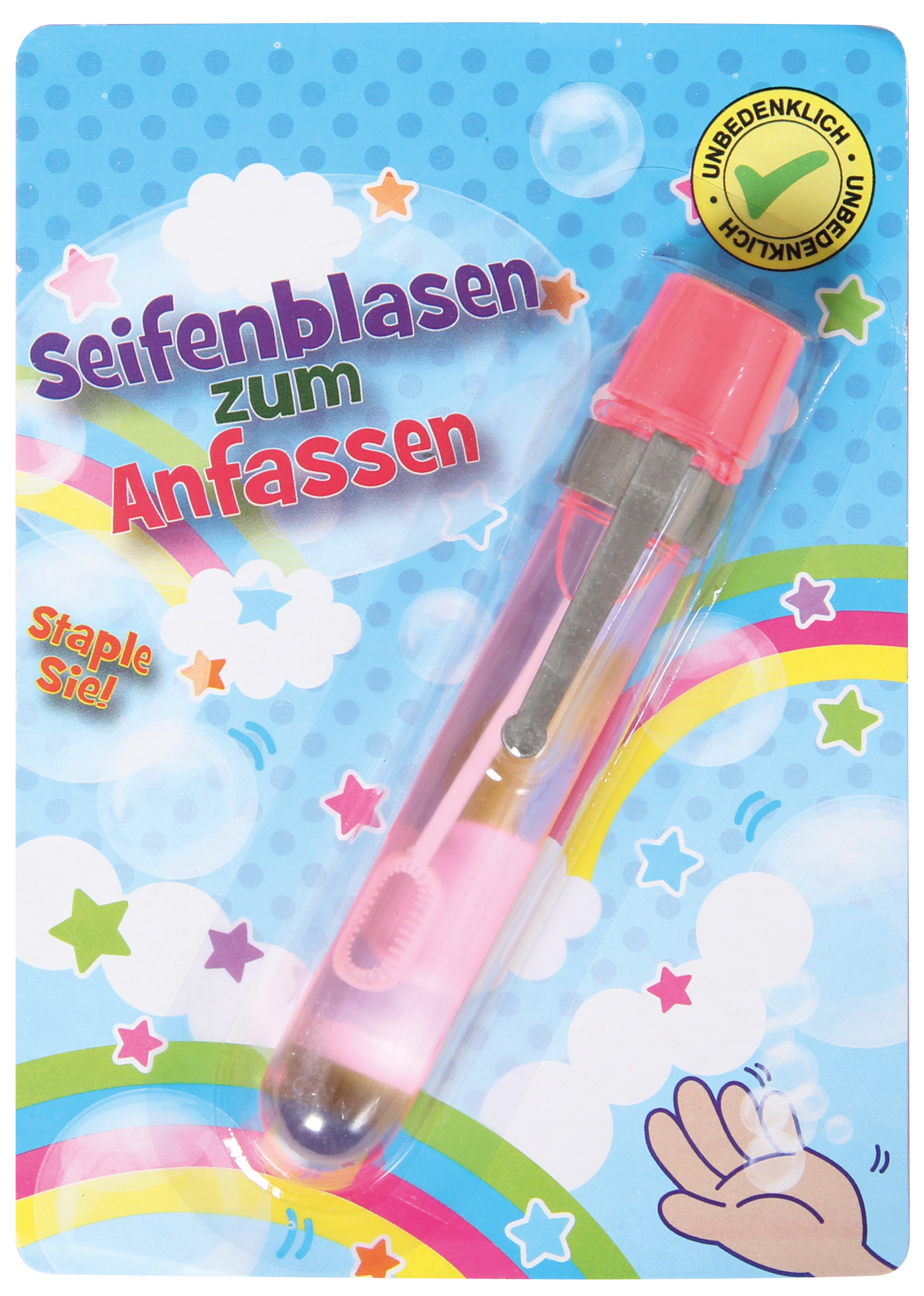 Die Seifenblasen zum Anfassen. Inhalt: ca 22 ml. Verschiedene Farben sortiert.