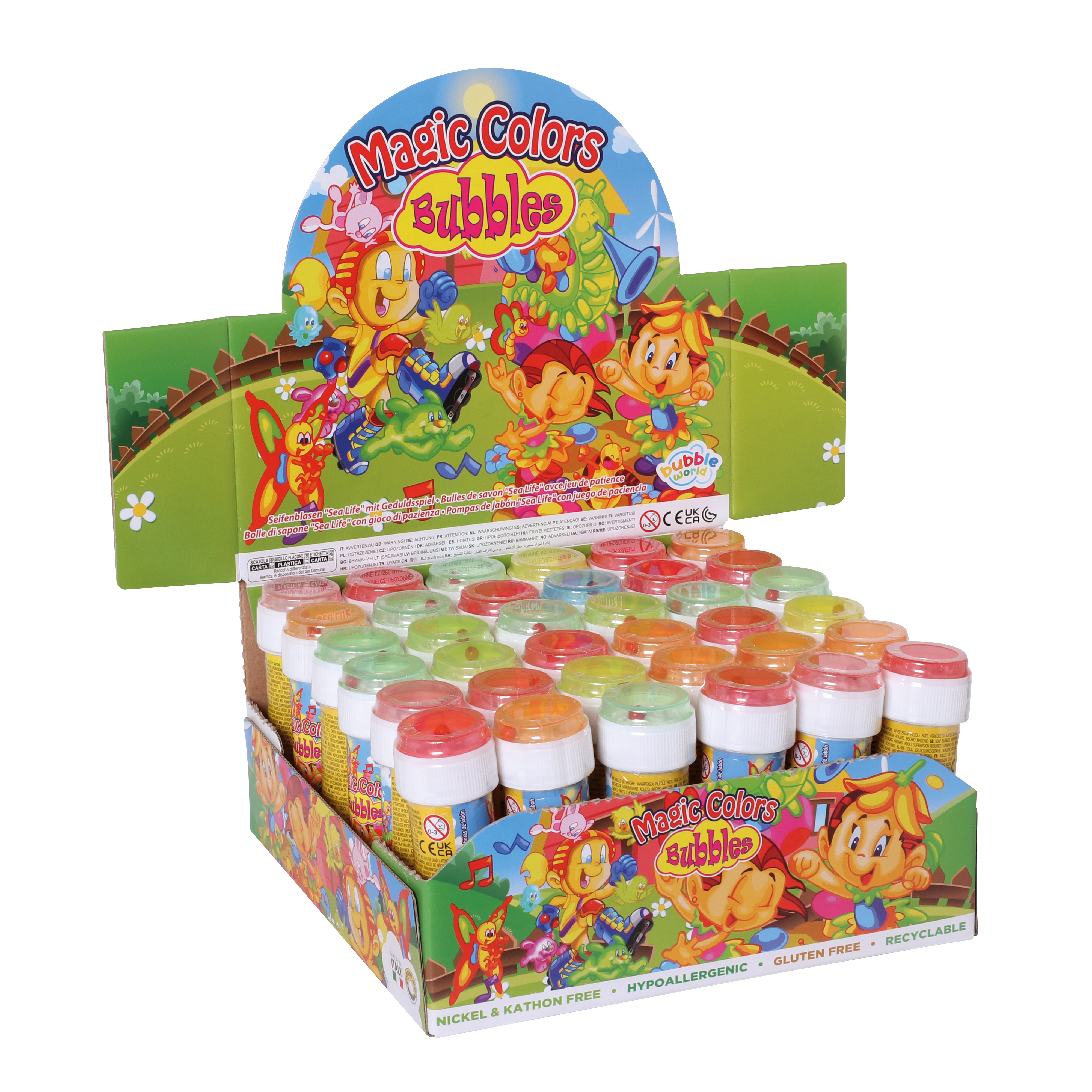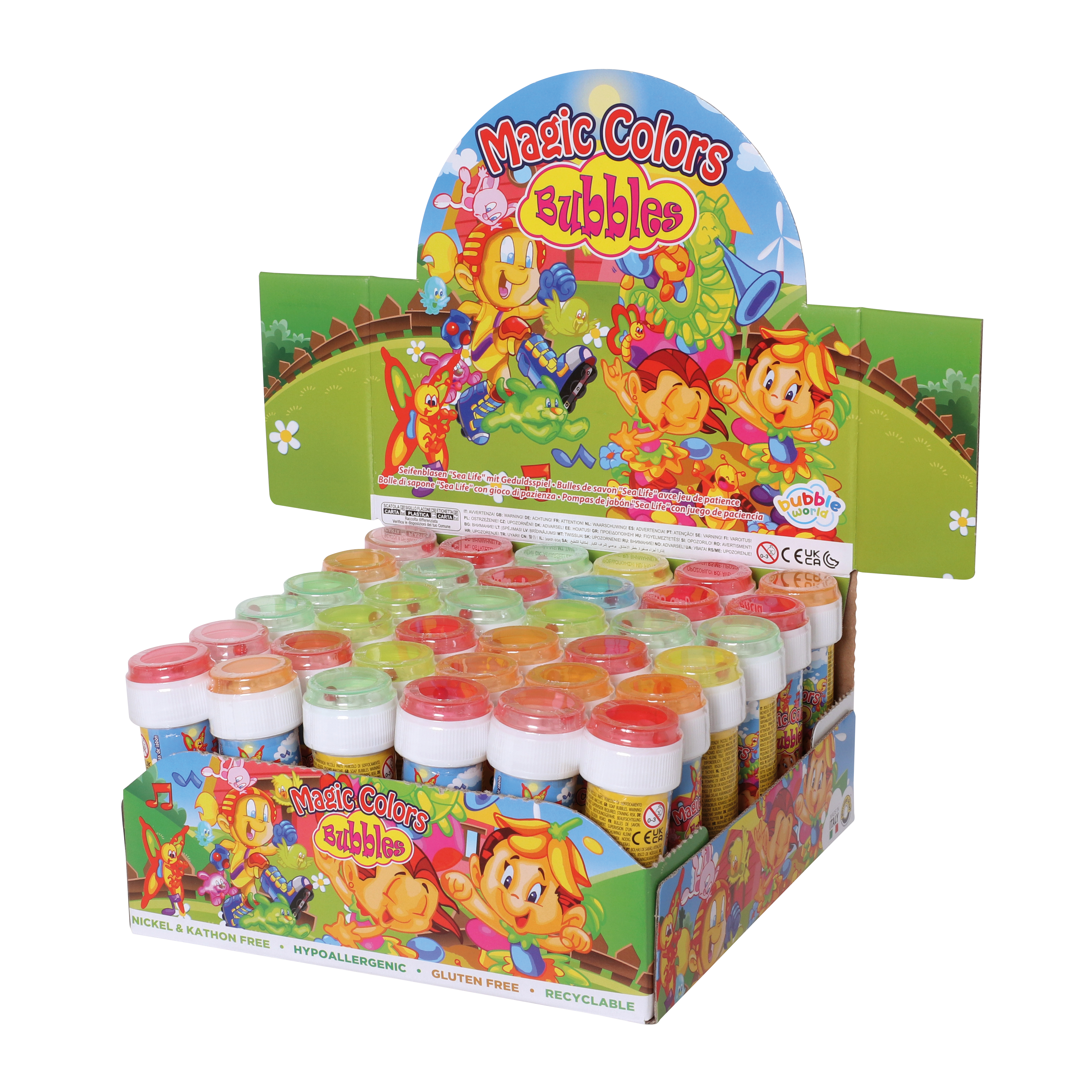 Beliebter Klassiker für Jung und Alt! Seifenblasen machen einfach immer Spaß! Im Deckel ist ein kleines Geduldspiel mit Metallkugeln. Viele verschiedene Designs sortiert.