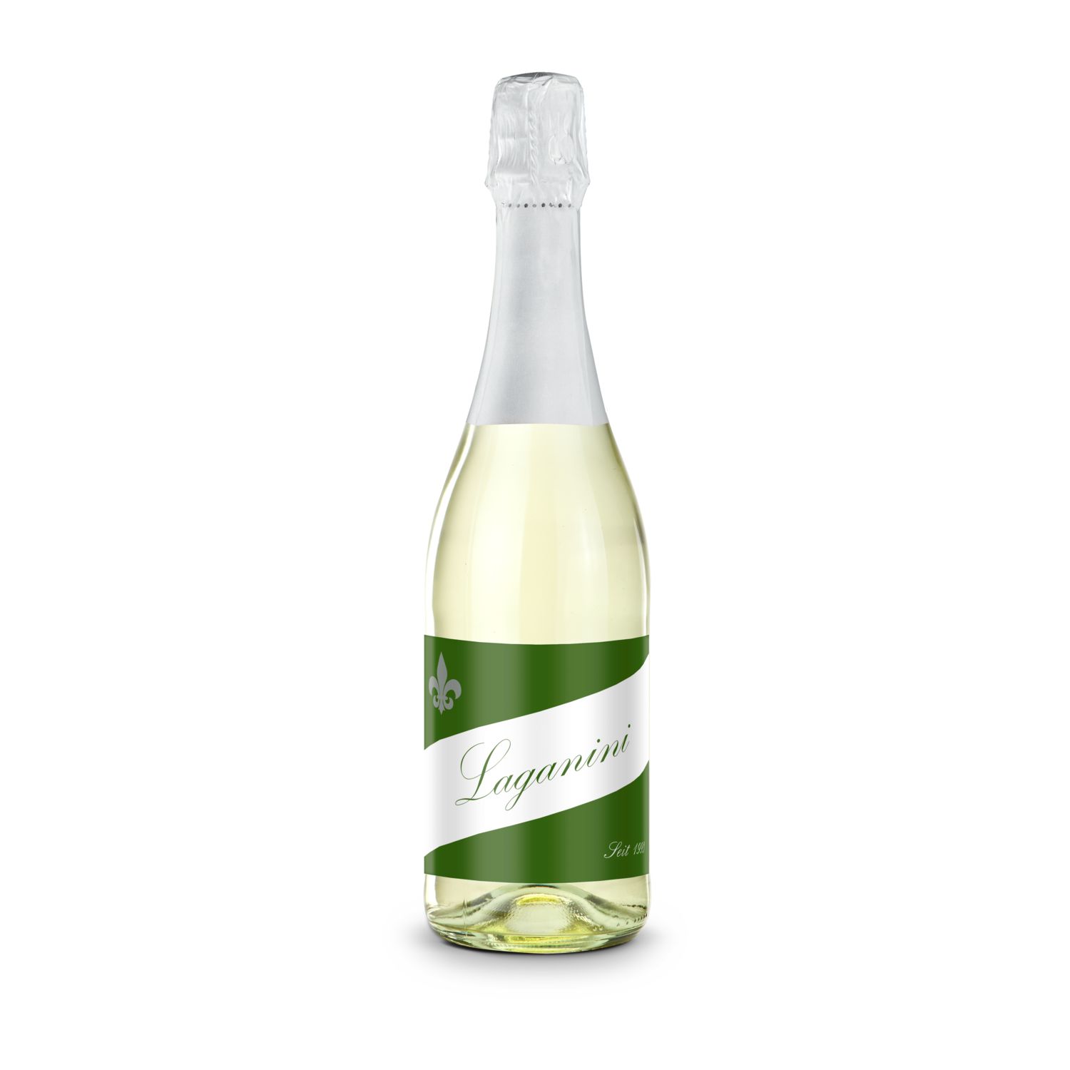 0,75 l - in klarer Flasche, trockenes Sekt Cuvée mit Naturkork und Agraffe, Alkohol 11% Vol. - Mit 5 verschiedenen Kapselfarben erhältlich. Inklusive 1,02 € Schaumweinsteuer in Deutschland!