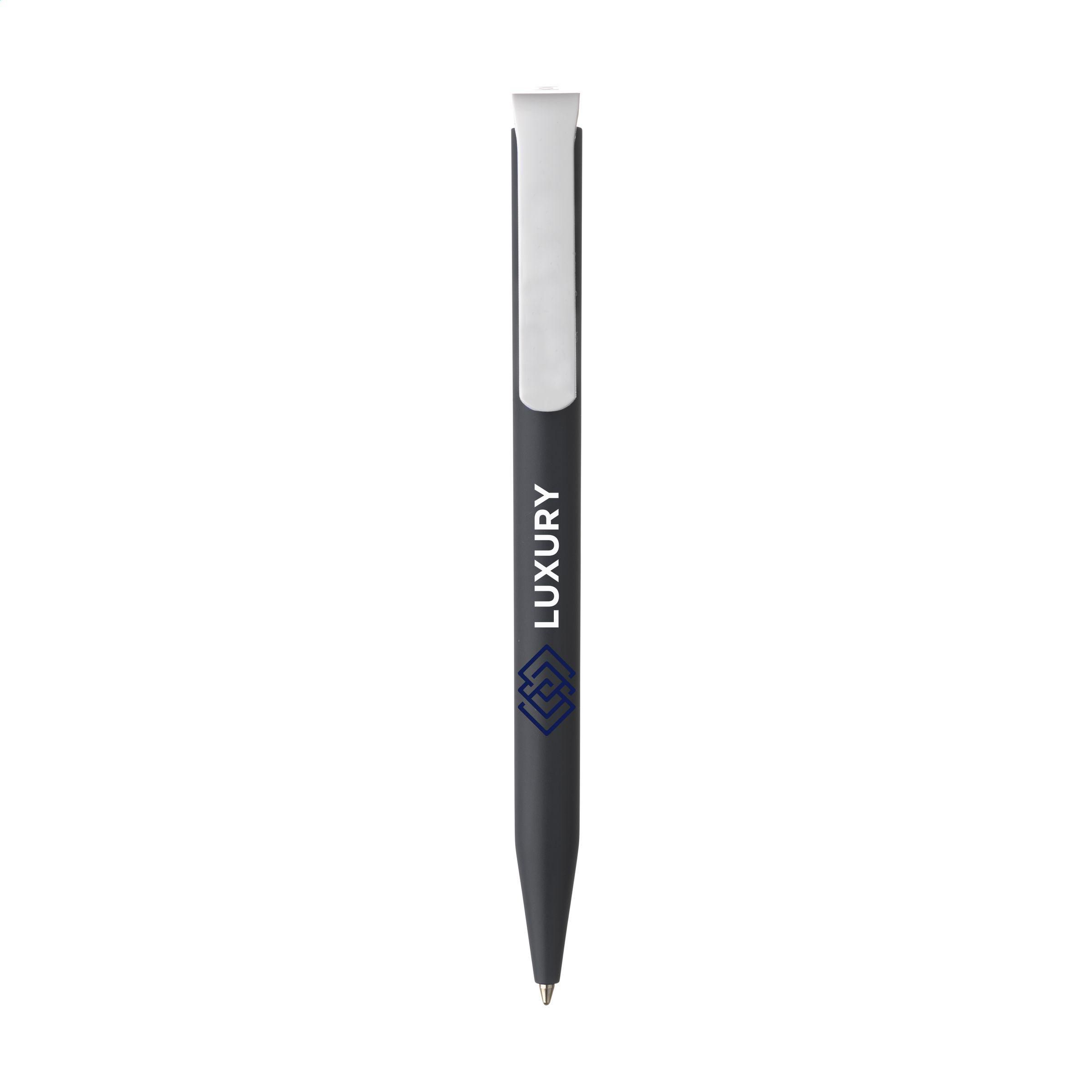 Beschreibung: Blauschreibender Kugelschreiber der Marke Senator®. Der matte Griff besteht aus PLA-Granulat auf Zuckerrohrbasis und ist daher biologisch abbaubar. Der Stift wird mit Ökostrom und zertifizierten Verfahren gemäß der Umweltnorm ISO 14001 hergestellt. Ausgestattet mit großzügigem Clip/Druckknopf. Hergestellt in Deutschland.