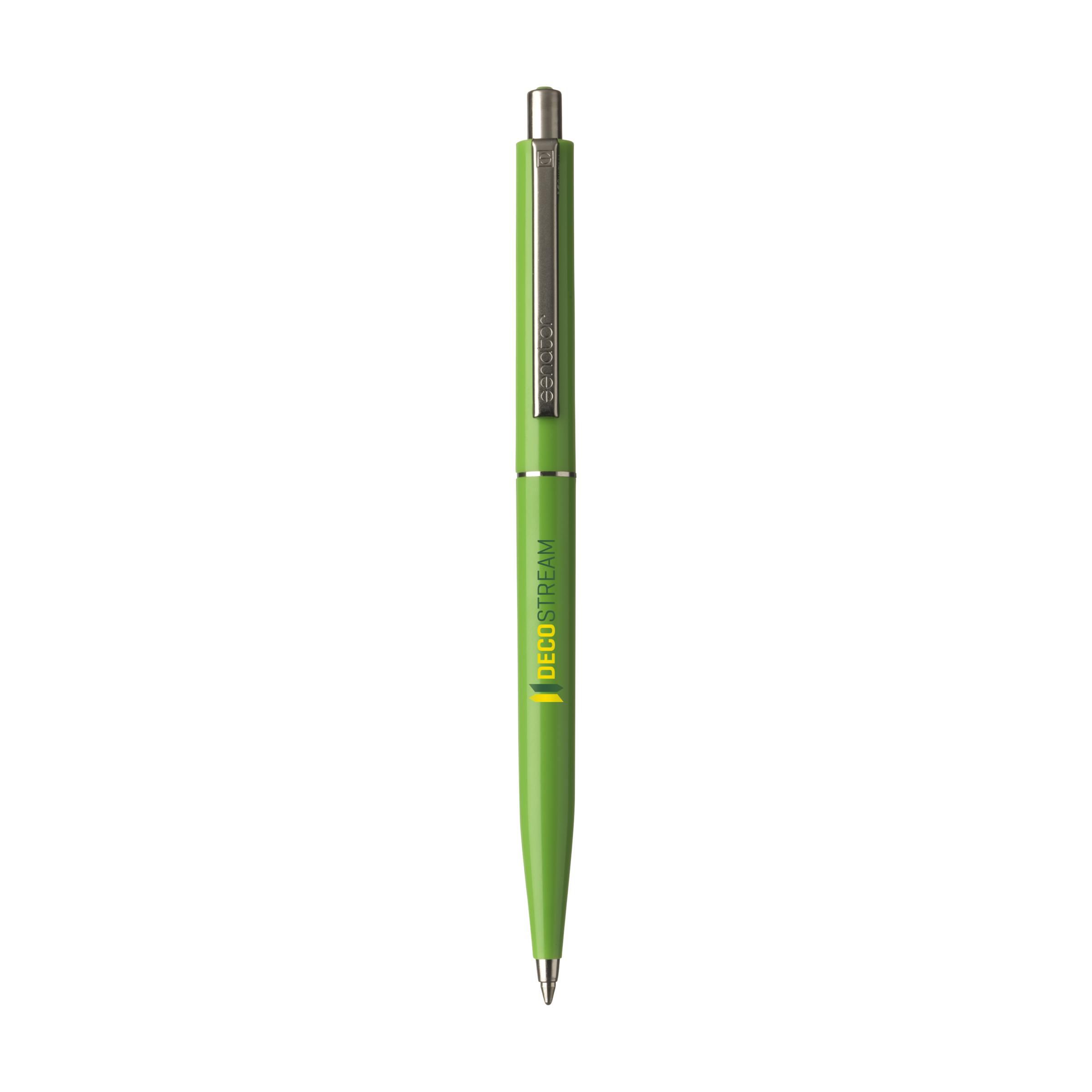 Beschreibung: Blauschreibender Kugelschreiber mit Spitze der Marke Senator®. Mit Clip, Druckknopf und Zwischenring aus Metall. Hergestellt in Deutschland. Der weiße und schwarze Kugelschreiber sind auch in schwarzschreibend erhältlich. Bitte geben Sie bei Ihrer Bestellung Ihre Wahl an.