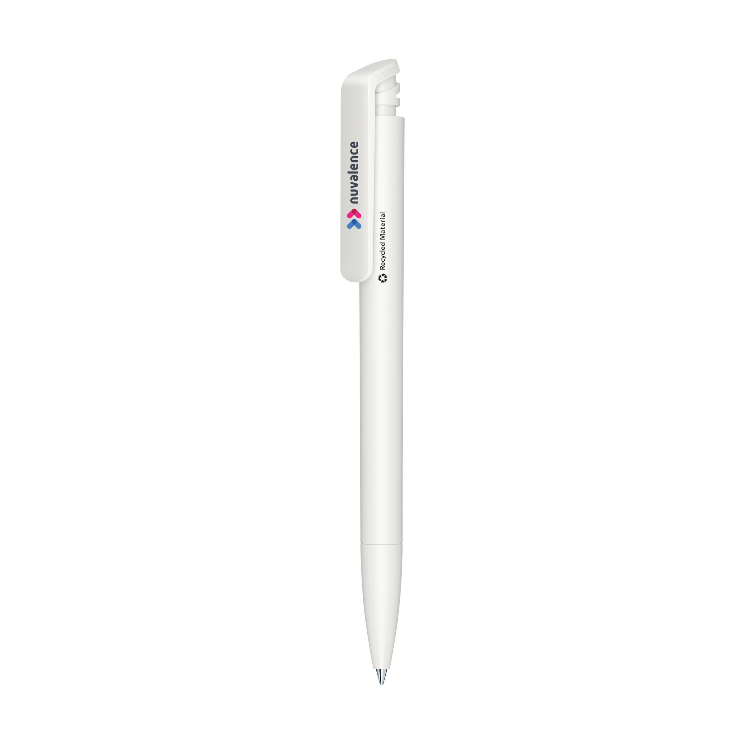 Beschreibung: Blauschreibender Kugelschreiber der Marke Senator®. Hergestellt aus recyceltem Material. Dieser Kugelschreiber hat eine glatte, matte Oberfläche und einen großzügig bemessenen Clip / Druckknopf. Das Gehäuse ist neben dem Clip mit dem kleinen Symbol für "aus recyceltem Material" bedruckt. Aufgrund des verwendeten Recyclingmaterials kann es zu leichten Unregelmäßigkeiten in der Oberfläche des Kugelschreibers kommen. Made in Germany.