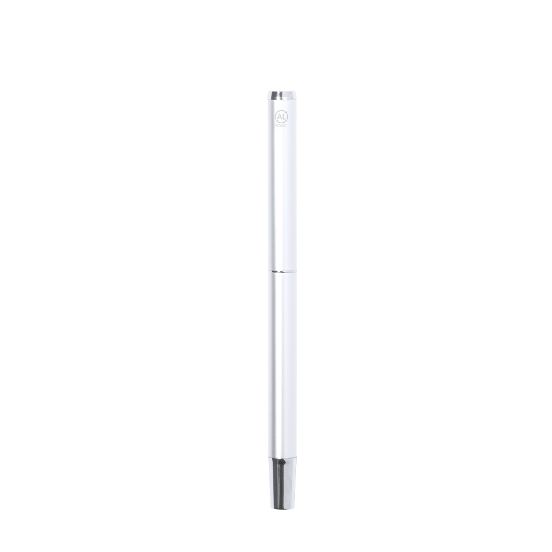 Kugelschreiber- und Rollerball-Set aus recyceltem Aluminium. Kugelschreiber mit Drehmechanik und Tintenroller mit Kappe, beide mit einem Metallclip ausgestattet. Beide verfügen über blaue Tinte und einen glänzenden Schaft mit einem Logo für recyceltes Aluminium. Präsentiert in einer individuellen Kraftbox. Recyceltes Aluminium ist ein Material mit nahezu unendlichen Recyclingmöglichkeiten, das seine ursprünglichen Eigenschaften nicht verliert und dabei weniger Energie verbraucht. Die GRS-Zertifizierung (Global Recycled Standard) garantiert, dass das für die Herstellung des Produkts verwendete Material aus recyceltem Material stammt.
