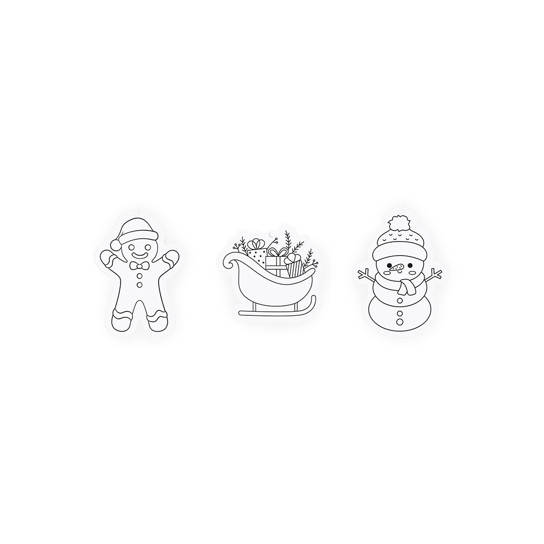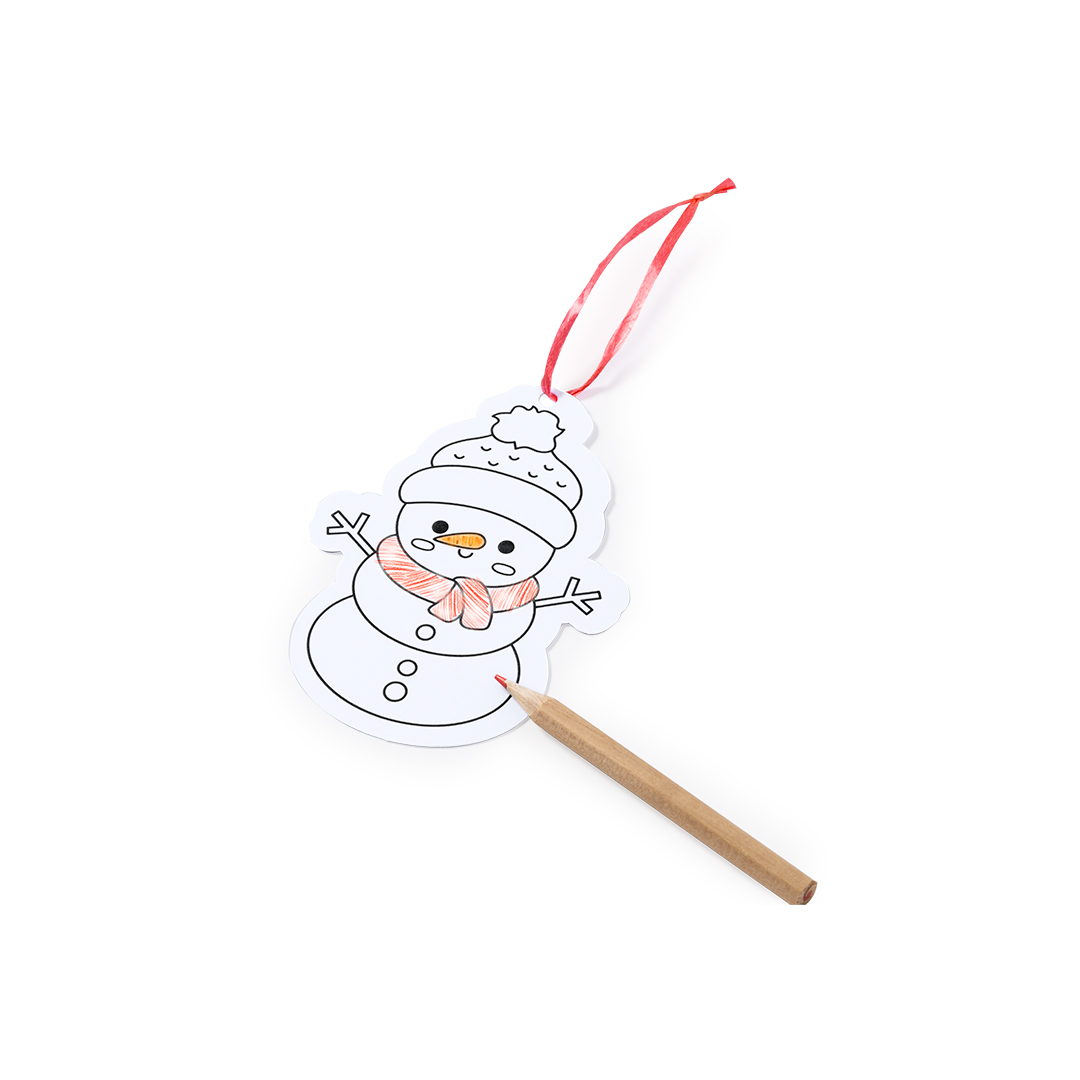 Schmuckset mit 6 originellen Weihnachtsmotiven zum Ausmalen und Schmücken des Weihnachtsbaums. Enthält 6 Holzstifte in verschiedenen Farben. Aus Pappe und in einer recycelten Tasche verpackt.