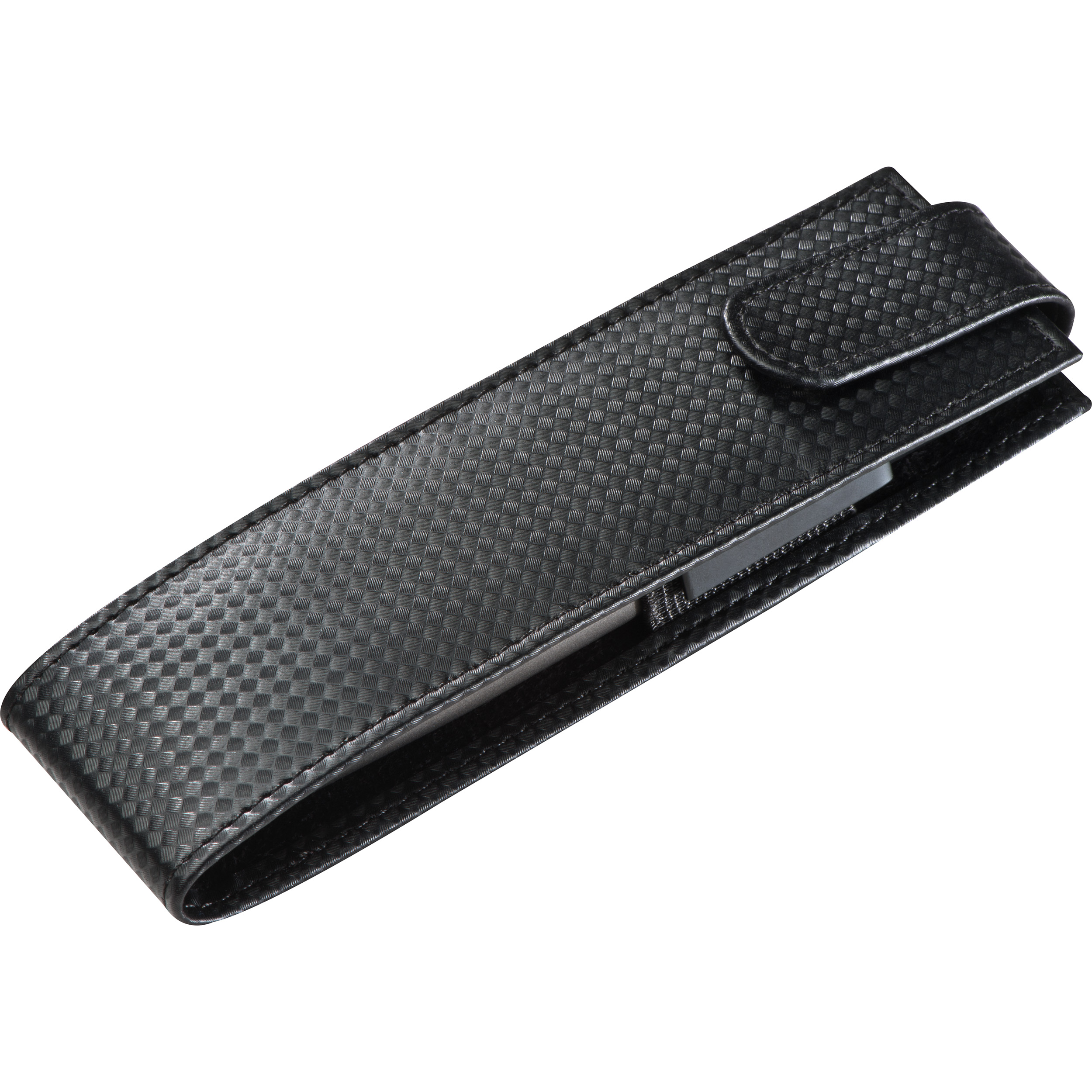 Schreibset aus Metall mit einem blau schreibenden Kugelschreiber und einem Druckbleistift in einem Carbonoptik-Pouch. Ihre Werbung wird auf die Schreibgeräte gelasert. Der Laserpreis versteht sich für beide Schreibgeräte.