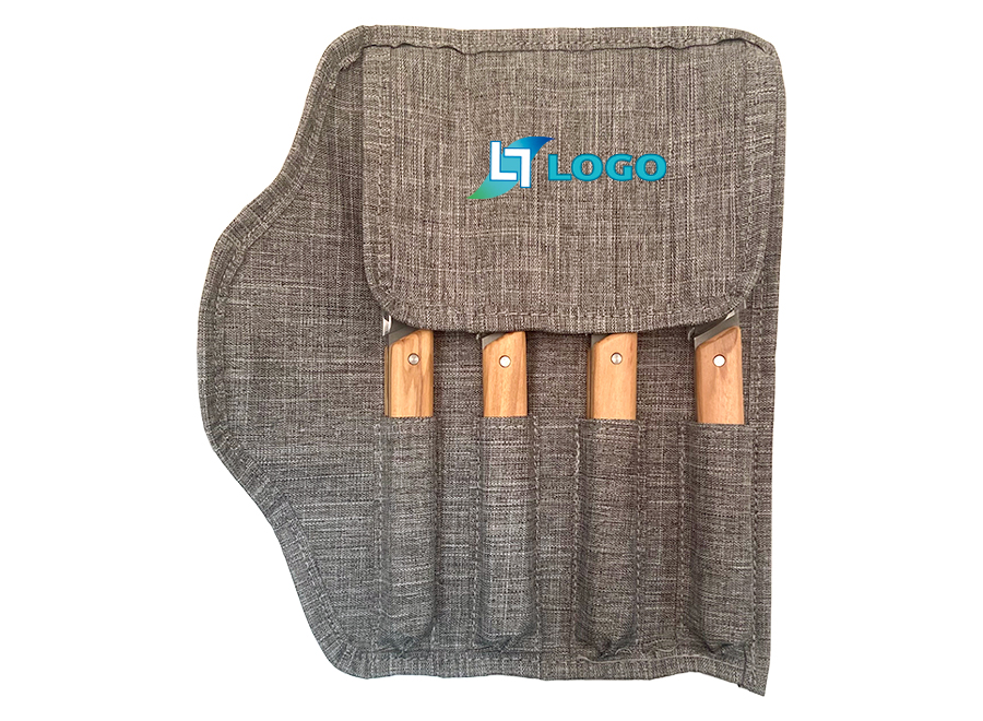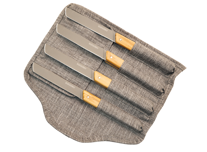 Set aus 4 Messern mit Klingenlänge von 10 cm. Klingen aus 420er Edelstahl für den Lebensmittelgebrauch (martensitischer Stahl gemäß EN10088-2 2005) und Titan-Finish. Griffe aus Olivenholz. Wird mit einer melierten grauen Rolltasche aus recyceltem RPET geliefert. Warnung: Dieses Produkt ist nicht spülmaschinengeeignet. Die Vorteile in Kürze: - Klingen aus martensitischem 420er Edelstahl (mit Titan-Finish) für optimale Festigkeit und perfekte Lebensmittelkonformität. - Griffe aus Olivenholz für Eleganz und Authentizität. - Präsentiert in einer Rolltasche aus recyceltem RPET, um sie zu schützen und überall mitnehmen zu können, sogar im Urlaub!