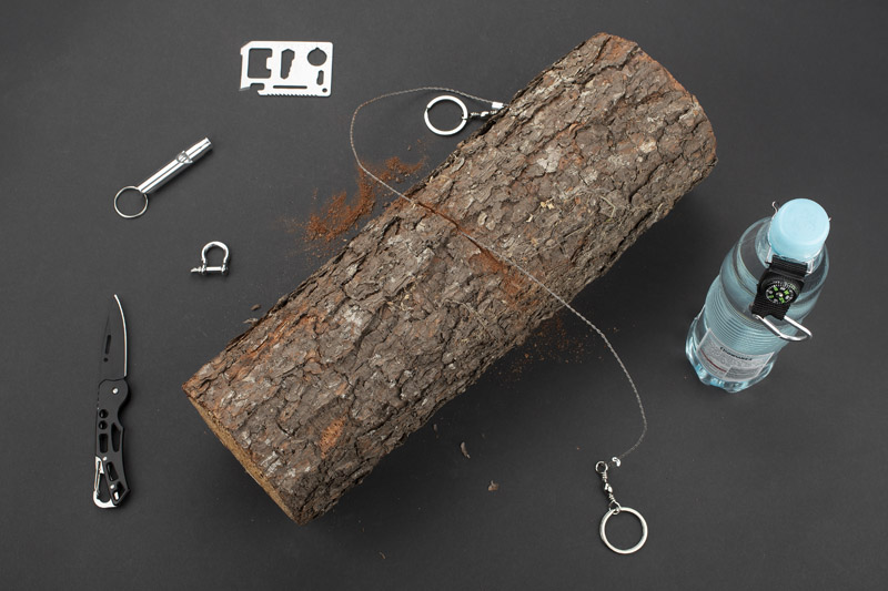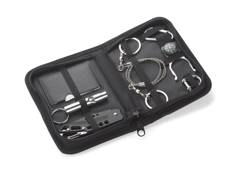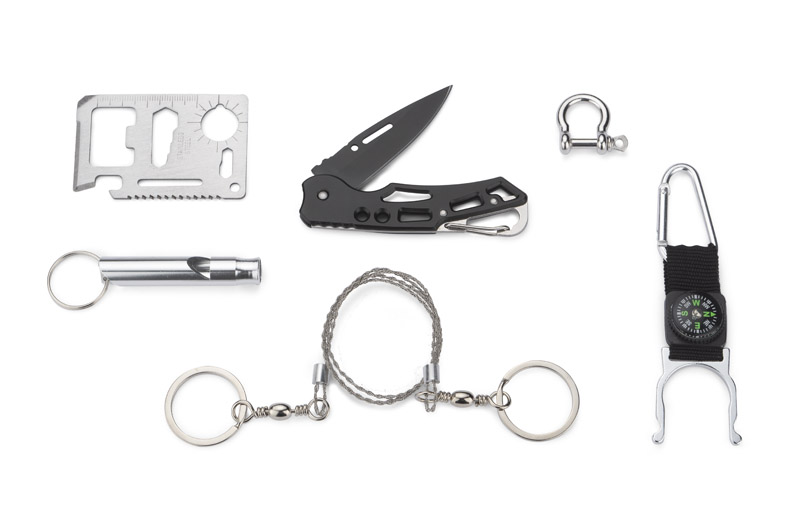 Das BALE Outdoor--Set ist ein Genuss für Survival-Liebhaber. In einem Set finden Sie alles, was auf vielen Reisen nützlich sein kann. Das Set besteht aus sechs Elementen: einem Flaschenhalter mit Karabiner und Kompass, einer manuellen Handkettensäge, einem Klappmesser, einer Pfeife, einem Segelschäkel und einer Überlebenskarte mit bis zu 11 Funktionen: Dosenöffner, Flaschenöffner, Schraubendreher, 4 cm Lineal, 4-Positionen-Schlüssel für verschiedene Schraubengrößen, zweireihige Säge, Zwei-PositionenSchraubenschlüssel und Lanyard- oder Schlüsselringloch. Das Set ist in einem schwarzen Etui verpackt.