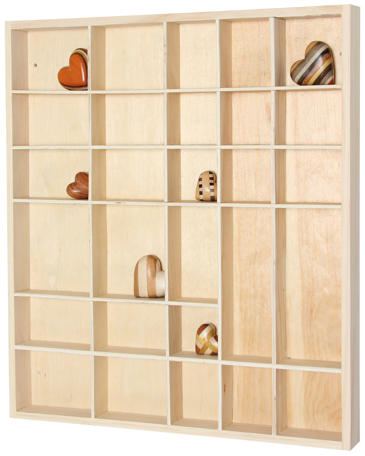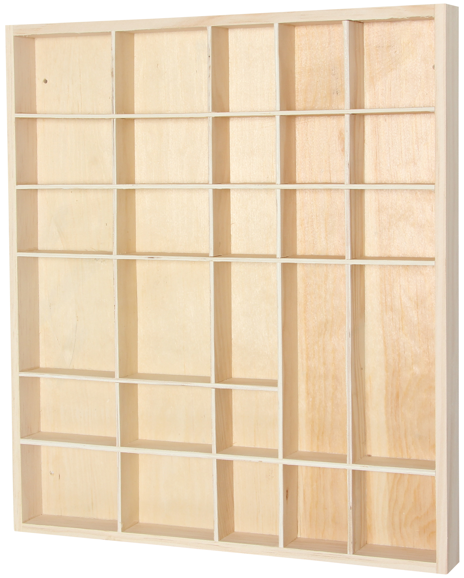 Mit Miniaturen und Fundsachen dekoriert, ist der Setzkasten ein origineller Blickfang! Leer.
