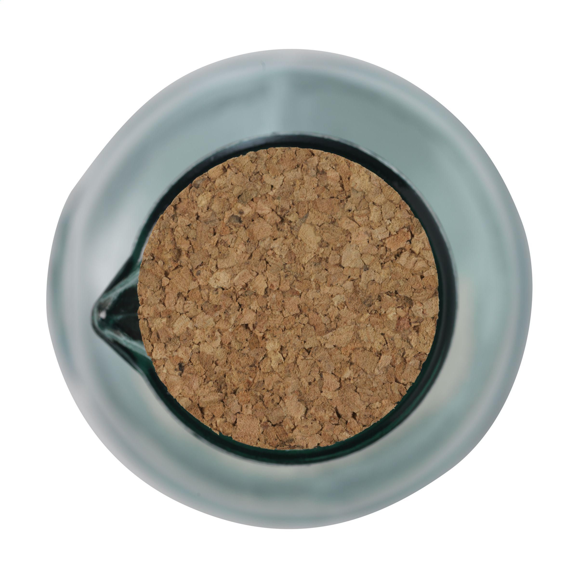 Dekorative Wasserflasche mit Ausgießer aus 100% recyceltem, robustem Qualitätsglas. Schließt mit einer Korkkappe. Ein gemütlicher Atmosphärenmacher mit Charakter. Das Glas ist durch den Relieftext: „Authentic Glass 100% recycled“ gekennzeichnet. Die blaugrüne Färbung des Glases ist ein natürliches Merkmal von recyceltem Glas. Dies Farbe und mögliche Unvollkommenheiten unterstreichen die Schönheit der Imperfektion und tragen zur Authentizität dieses Produkts bei. Recycling reduziert den Verbrauch von neuen Rohstoffen, Wasser und Energie. Farbe, Dicke und Größe können von Produkt zu Produkt variieren. Made in Spain. Fassungsvermögen: 1.200 ml.