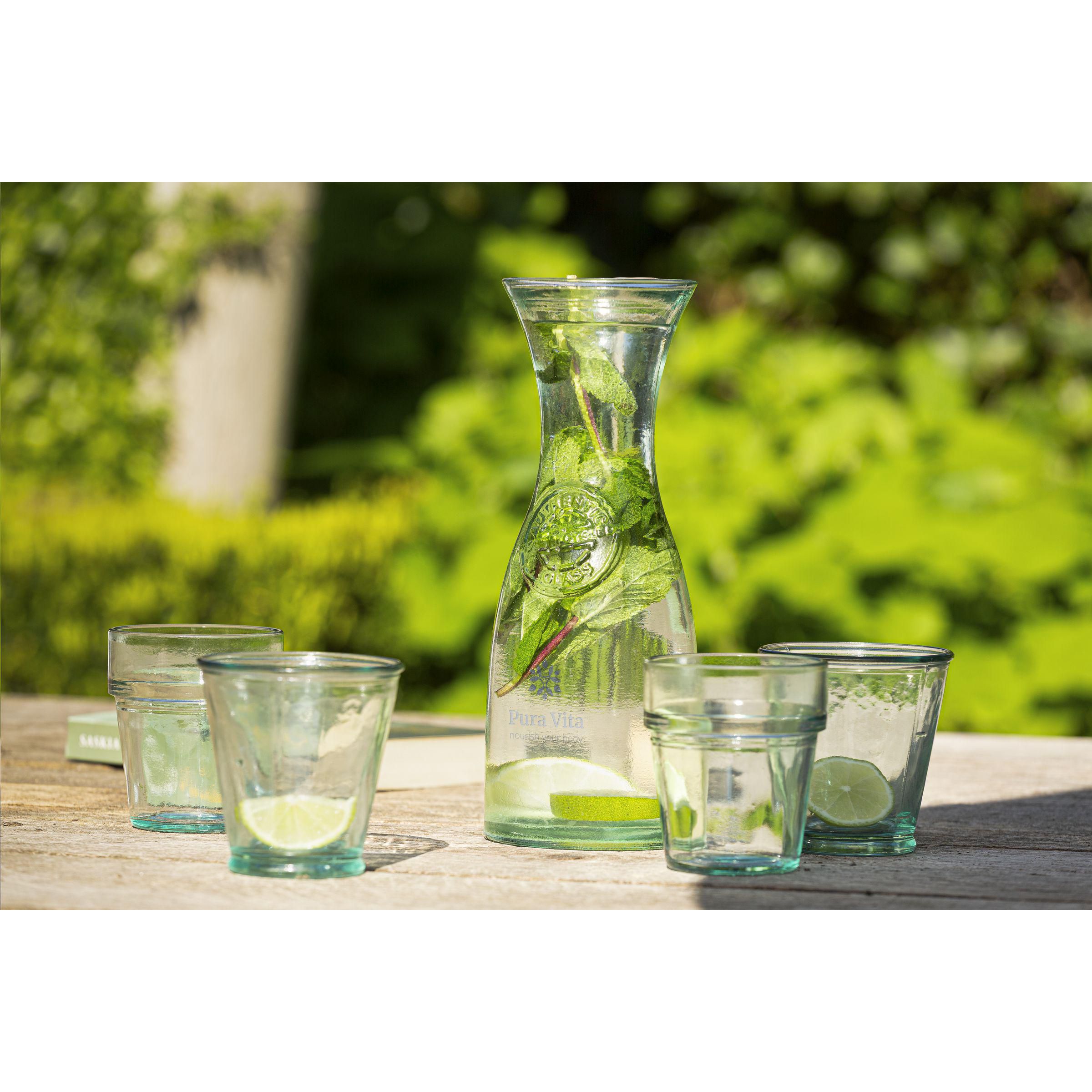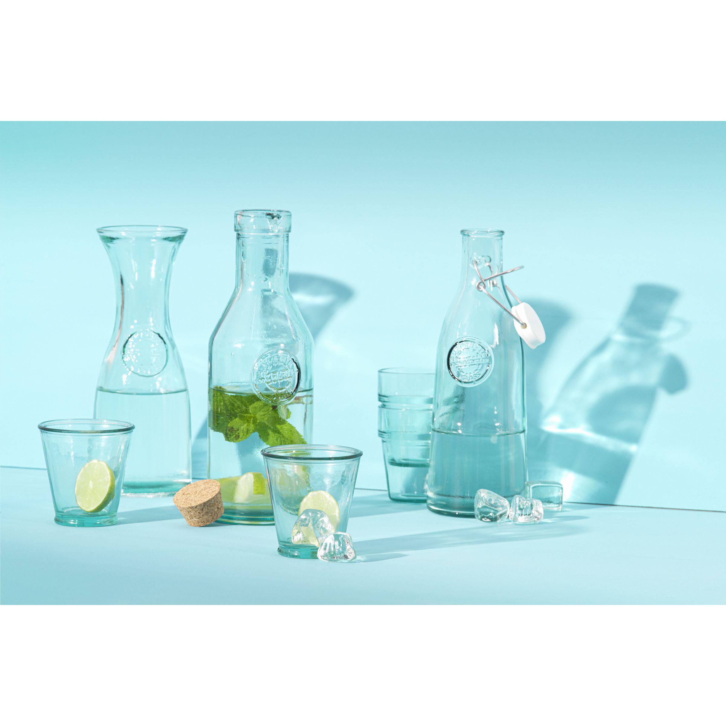 Rustikales Wasserglas mit dickem Rand. Hergestellt aus 100% recyceltem, robustem Qualitätsglas. Die blaugrüne Färbung des Glases ist ein natürliches Merkmal von recyceltem Glas. Die Farbe und mögliche Unvollkommenheiten unterstreichen die Schönheit der Imperfektion und tragen zur Authentizität dieses Produkts bei. Recycling reduziert den Verbrauch von neuen Rohstoffen, Wasser und Energie. Farbe, Dicke und Größe können von Produkt zu Produkt variieren. Made in Spain. Fassungsvermögen: 220 ml.