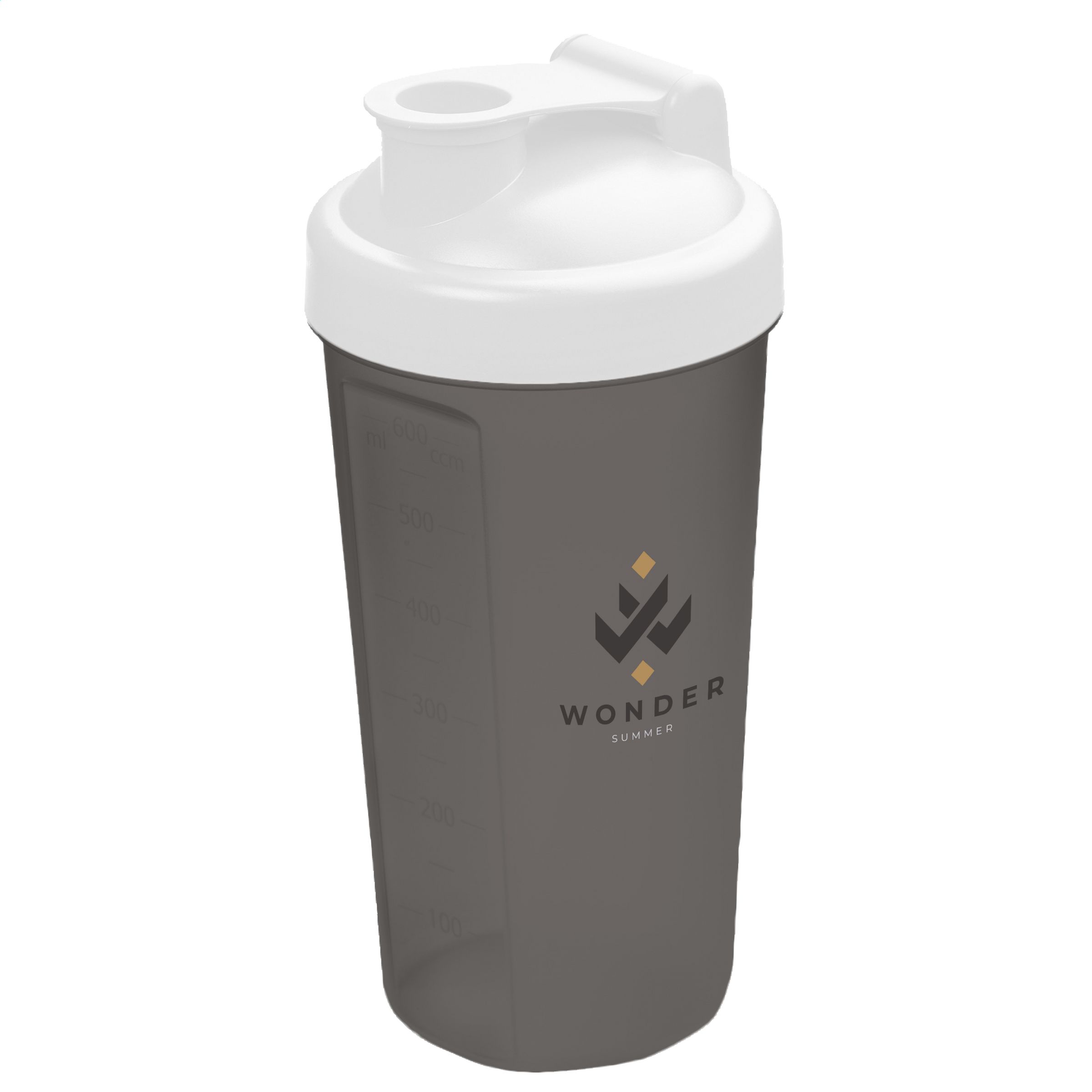 Funktionaler, transparenter Plastikshaker für Proteindrinks. Der Schraubdeckel hat eine verschliessbare Trinköffnung. Inklusive einer Skala (pro 50 ml). Fassungsvermögen 600 ml. Geeignet für Lebensmittel. Hergestellt in Deutschland.