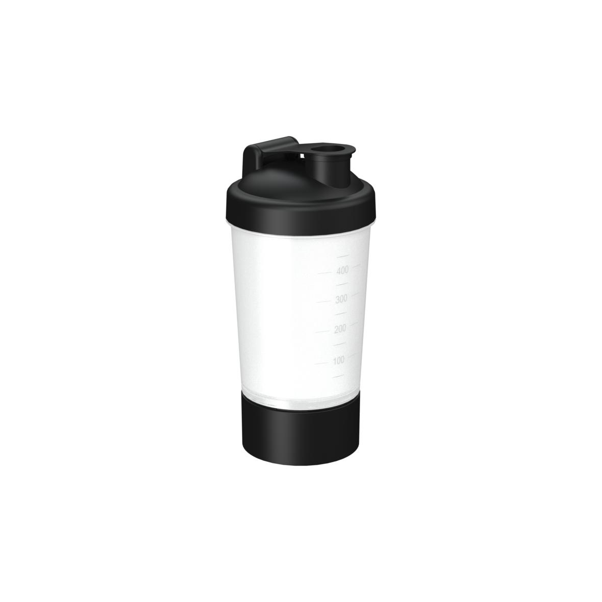 Shake it up! Ideal für den Eiweiß-Shake nach dem Training. Dieser Shaker mit geprägter Skala in 50 ml Schritten und Schraubdeckel mit verschließbarer Trinköffnung beinhaltet ein herausnehmbares Sieb, mit dem sich Shakepulver und Flüssigkeit bei gutem Schütteln optimal vermischen. Zusätzlich verfügt dieser Shaker über eine abnehmbare Kammer, welche sich separat befüllen lässt. Der Mix-Becher lässt sich komplett auseinandernehmen und somit leicht reinigen. Füllmenge (Shaker ohne Zusatzfach): 0,4 Liter.