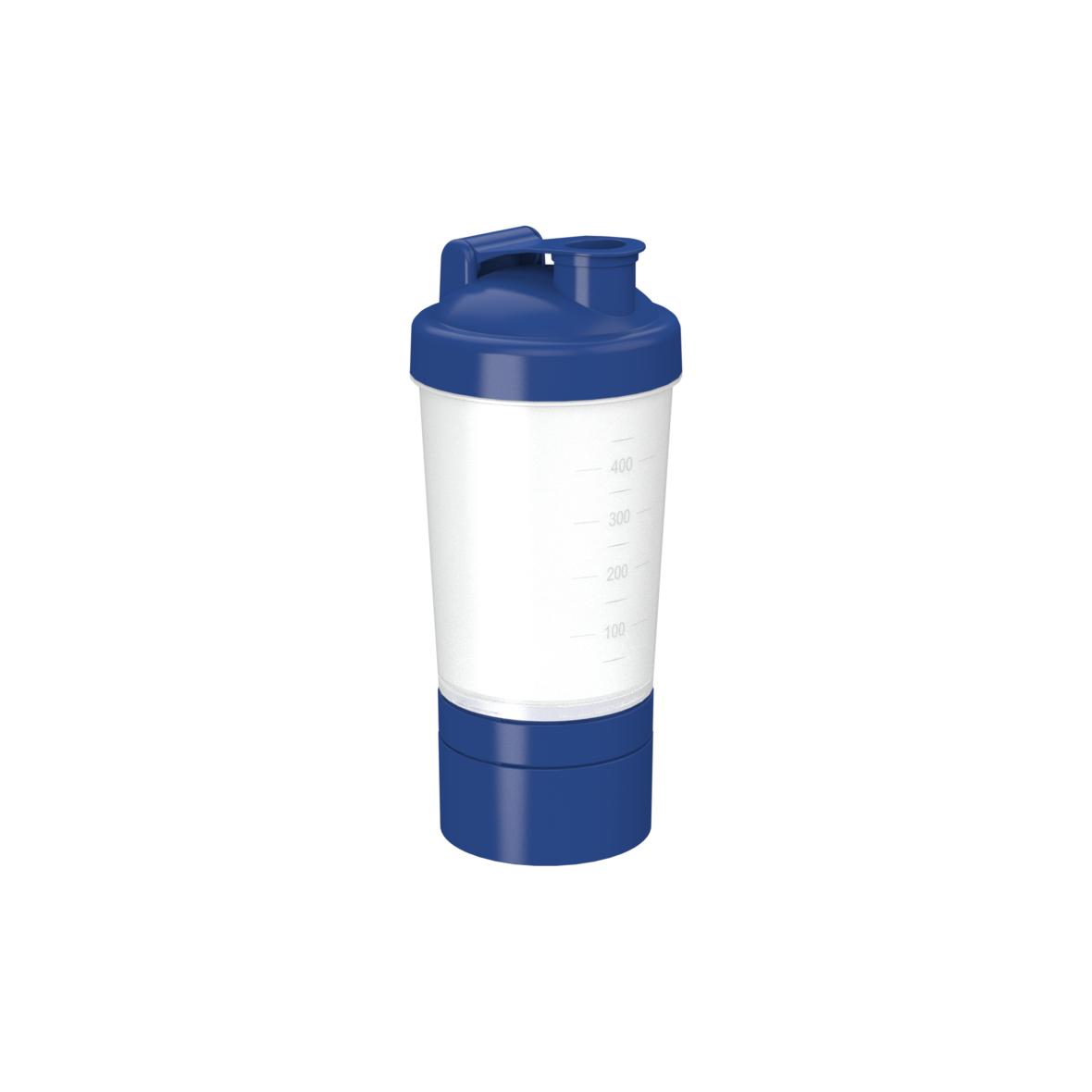 Shake it up! Ideal für den Eiweiß-Shake nach dem Training. Dieser modulare Shaker mit geprägter Skala in 50 ml Schritten und Schraubdeckel mit verschließbarer Trinköffnung beinhaltet ein herausnehmbares Sieb, mit dem sich Shakepulver und Flüssigkeit bei gutem Schütteln optimal vermischen. Zusätzlich verfügt dieser Shaker über zwei abnehmbare Kammern, welche sich separat befüllen lassen. In der kleineren Kammer befindet sich zudem ein herausnehmbarer 3-geteilter Einsatz. Der Mix- Becher lässt sich komplett auseinandernehmen und somit leicht reinigen. Füllmenge (Shaker ohne Zusatzfächer): 0,4 Liter.