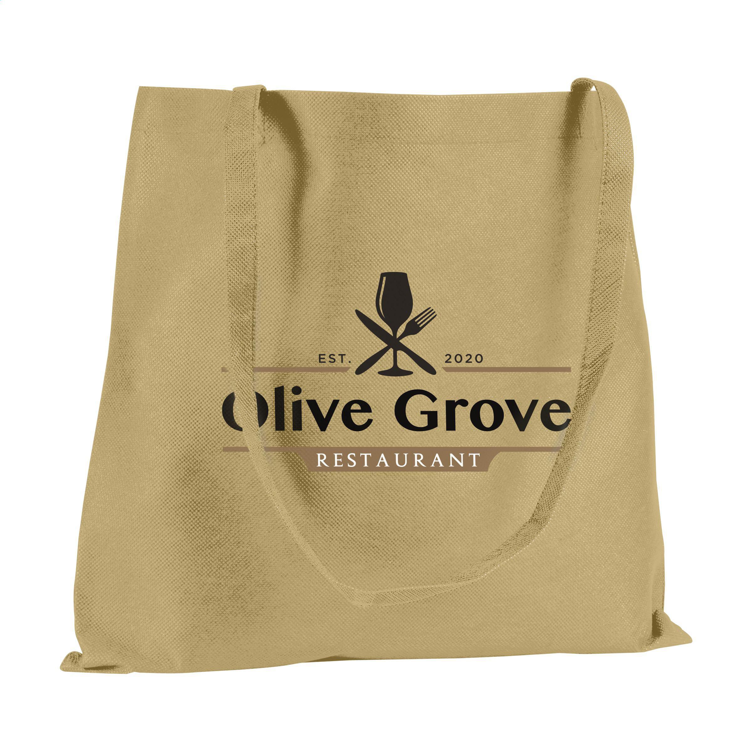 Einkaufstasche mit langen Henkeln aus "non woven" Material (80 g/m²): eine superleichte, starke Kunstfaser. Fassungsvermögen ca. 8 Liter.