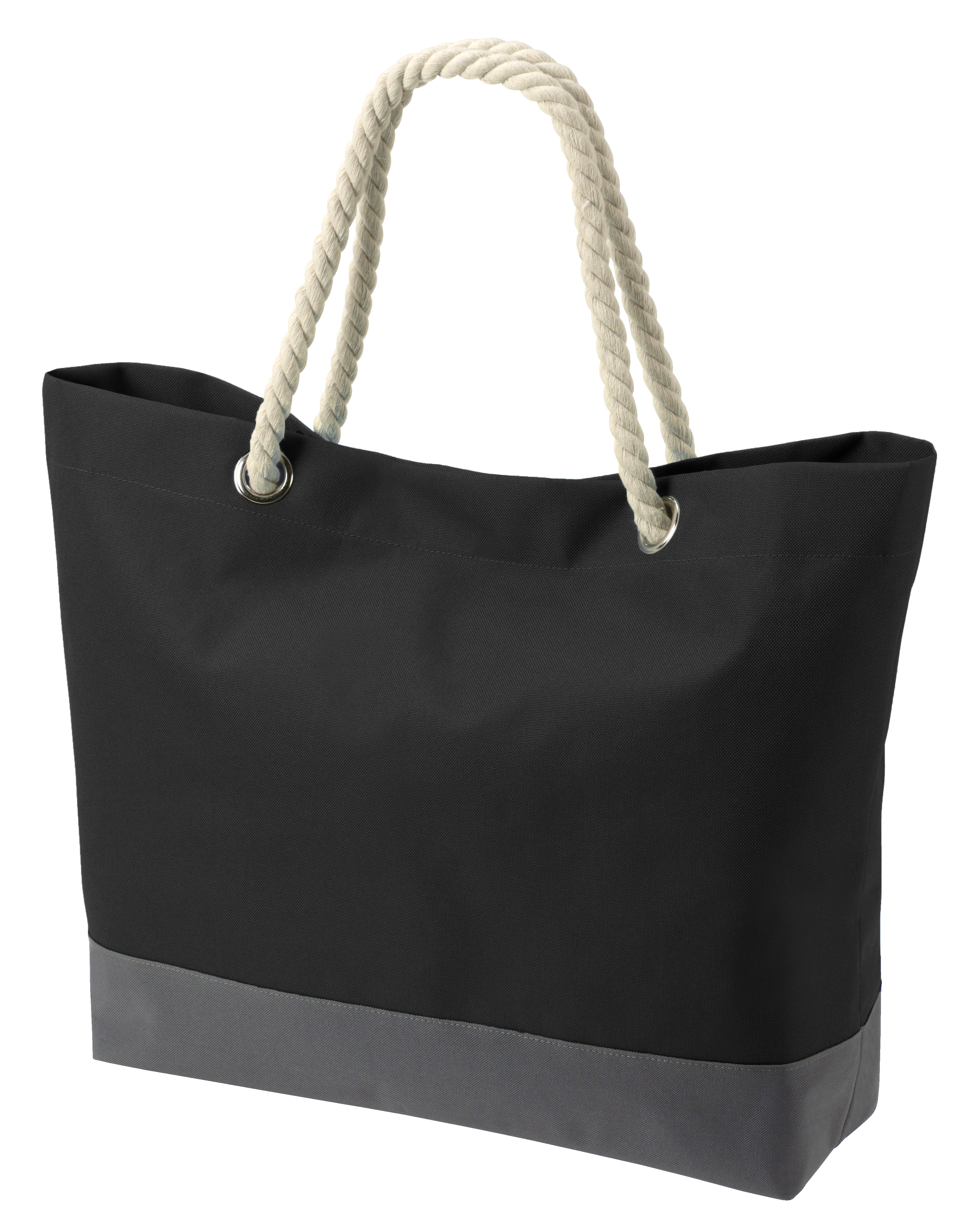Formschöner, großer Shopper mit dekorativen Ösen und Griffen aus dicker Baumwollkordel; Hauptfach mit hängendem Reißverschluss-Organizer