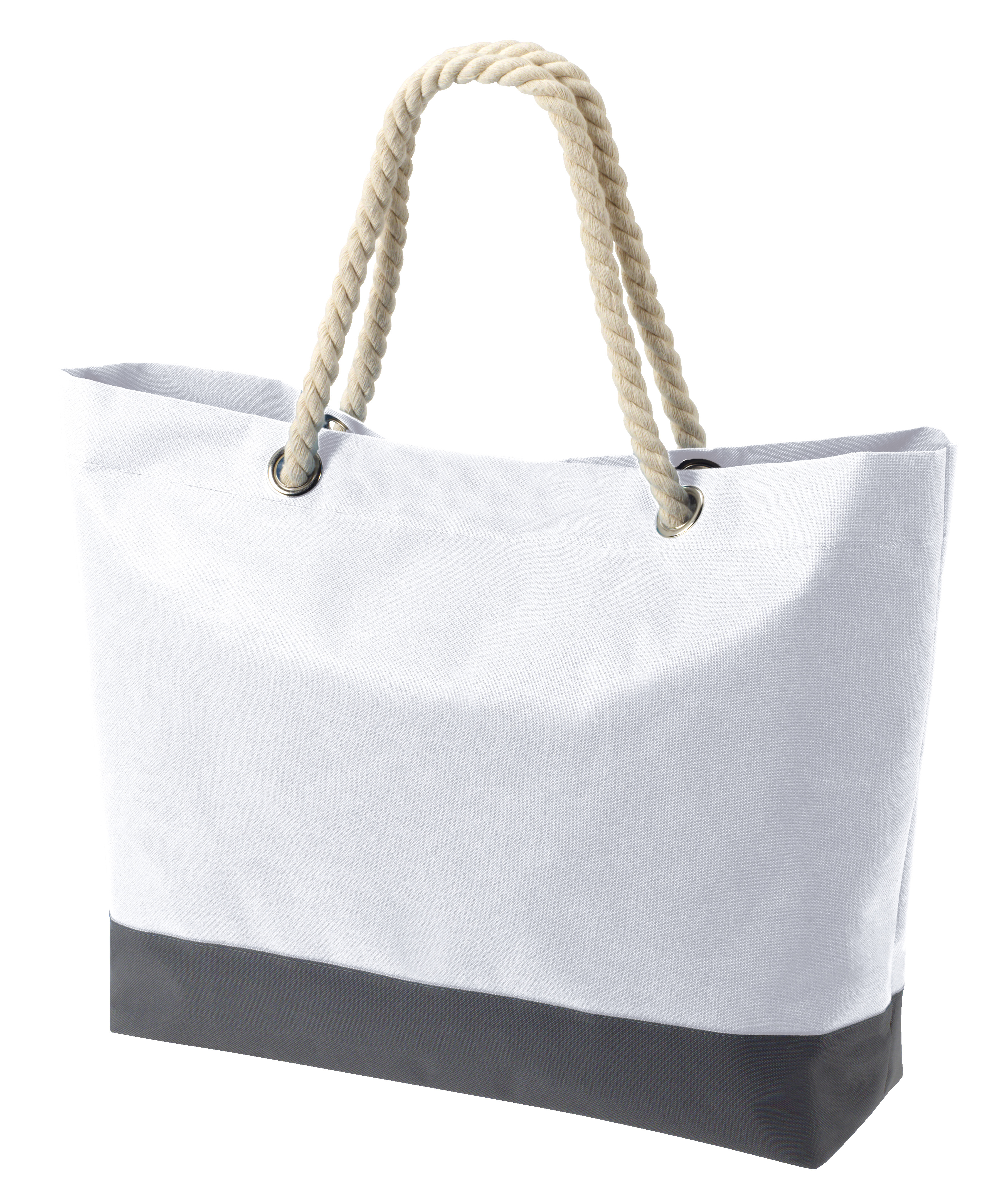 Formschöner, großer Shopper mit dekorativen Ösen und Griffen aus dicker Baumwollkordel; Hauptfach mit hängendem Reißverschluss-Organizer