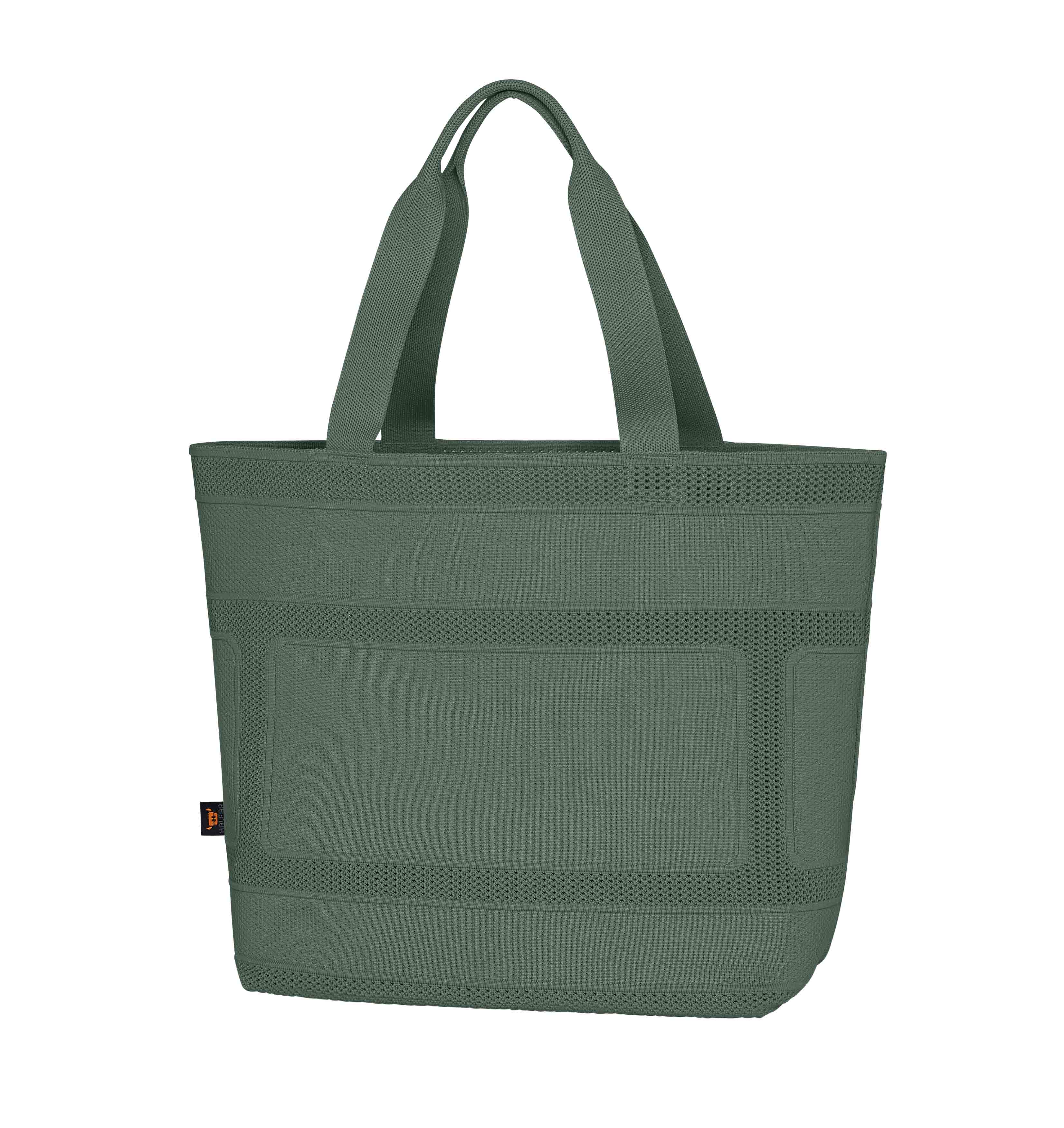 Innovativer Strick-Shopper; attraktive Kachel-Optik: Monomaterial; großes Hauptfach mit hängendem Organizer; ergonomisch geformte Träger