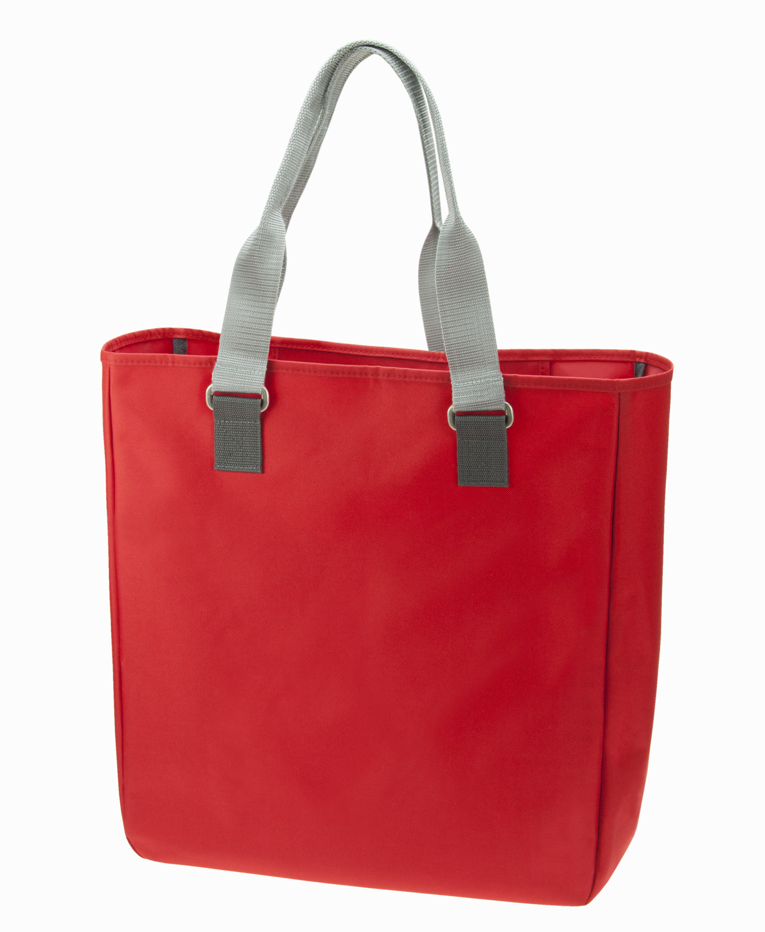 Formschöner, großer Shopper mit dekorativen Metallschnallen und zweifarbigen Gurten; Hauptfach mit hängendem Reißverschluss-Organizer