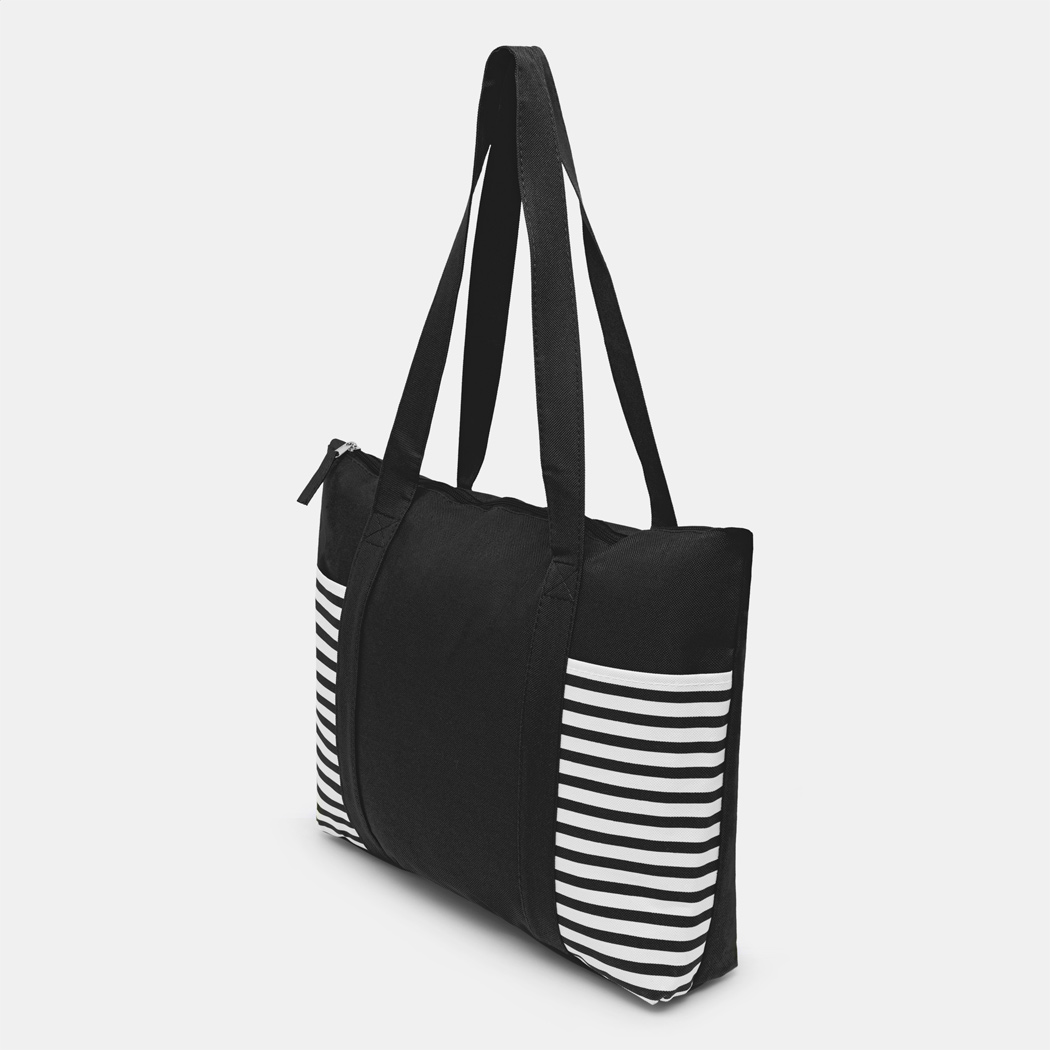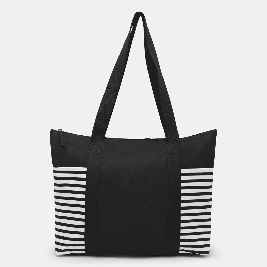 Shopper TWIN: Reißverschluss-Hauptfach, 2 Seitentaschen in Streifen-Optik, 2 lange Tragegriffe